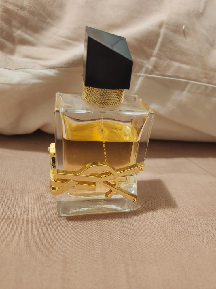 251Yves Saint Laurent perfume. Gold accents. Clear glass bottle. Black cap.