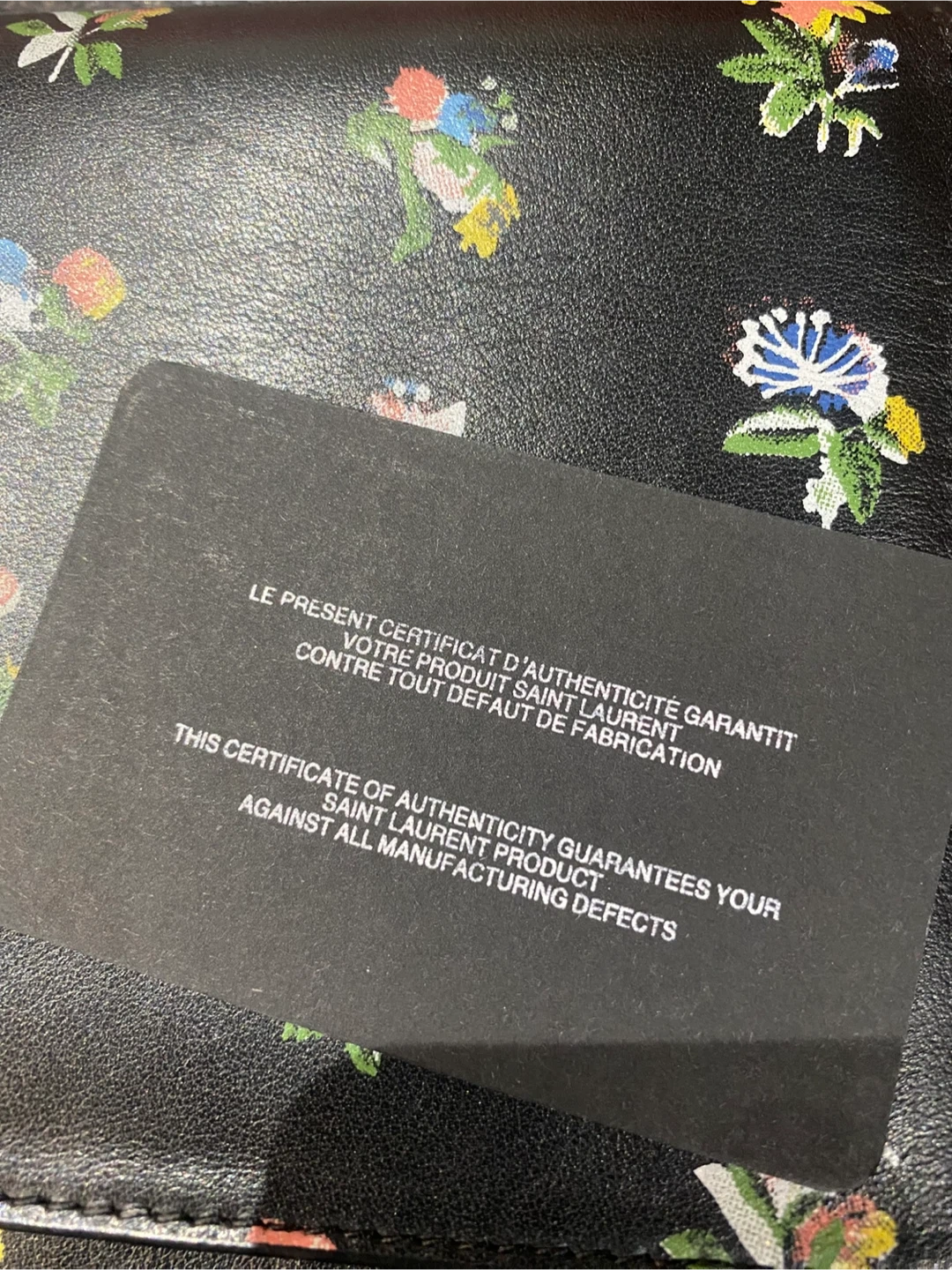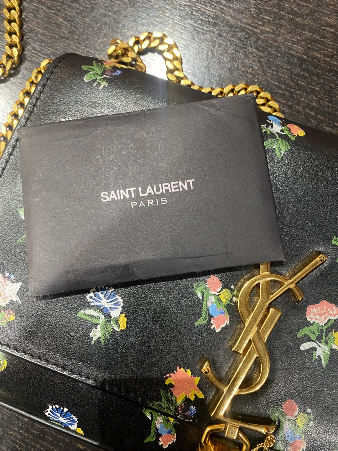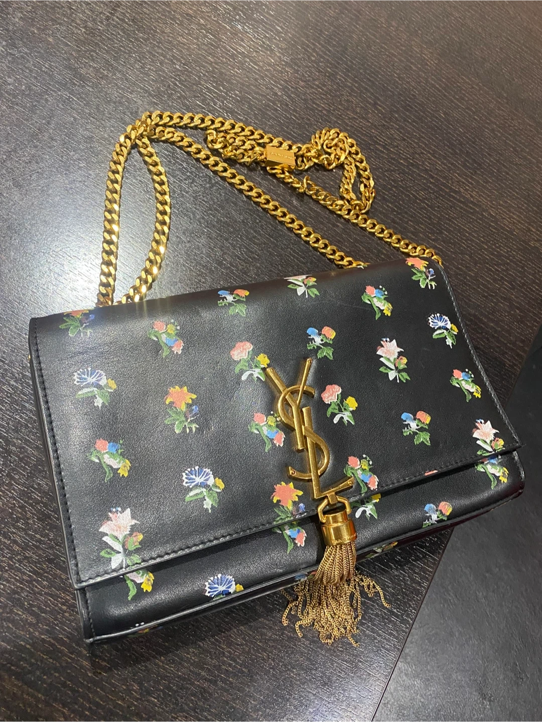 10This is a rare Yves Saint Laurent purse on chain with a cute floral pattern. Bought in Beverly Hills Los Angeles. This pattern is exclusive to LA and not found in Toronto. It comes with a gold chain and the original certificate of authenticity. It's in great condition and perfect for adding a touch of elegance to your look. Be an LA it girl right off the runway. Makes a great gift.