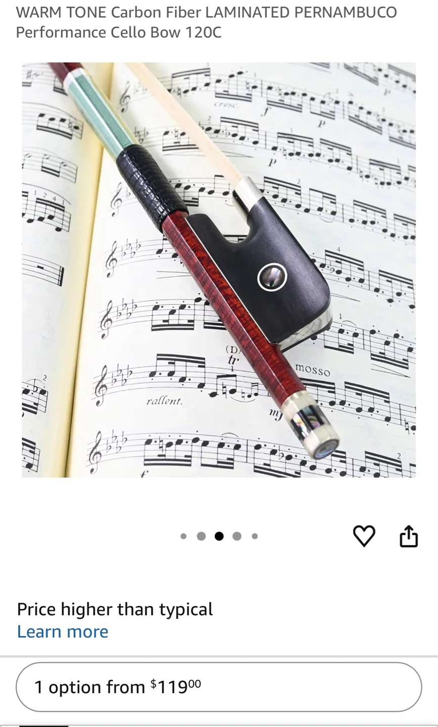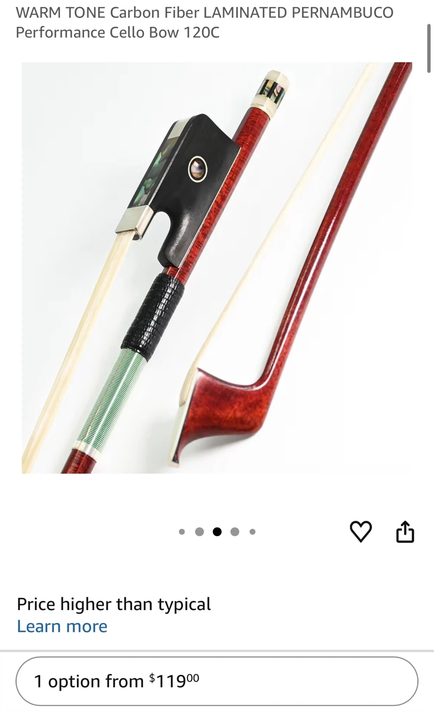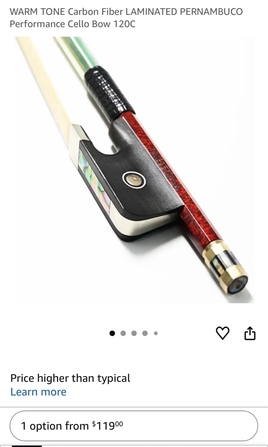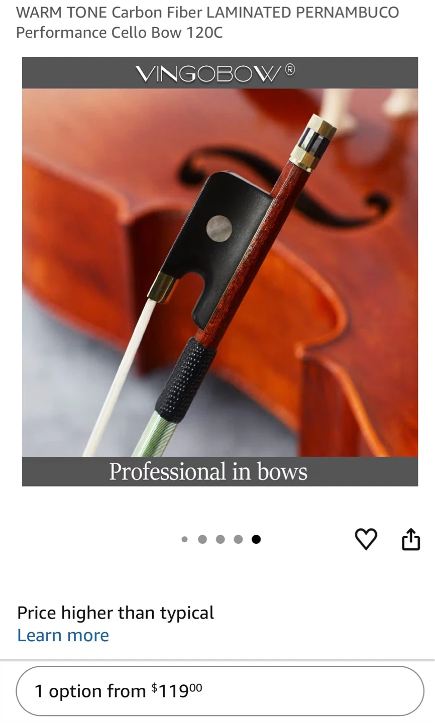 Buy & SellVINGOBOW Carbon Fiber Cello BowVINGOBOW Carbon Fiber Cello Bow$80A VINGOBOW carbon fiber cello bow. Features a Pernambuco laminate and a warm tone. It's 120C model. Pickup cash onlyConditionNewWHERE TO MEETCheck LocationView MapSELLERverifiedReemLongwoods1013 reviews0 chats·0 favorites·9 viewsSEND CHAT TO SELLERHi Reem! I’m interested in your listing.Hi Reem! I’m interested in your listing.Get the Karrot app to chatSign In to chat