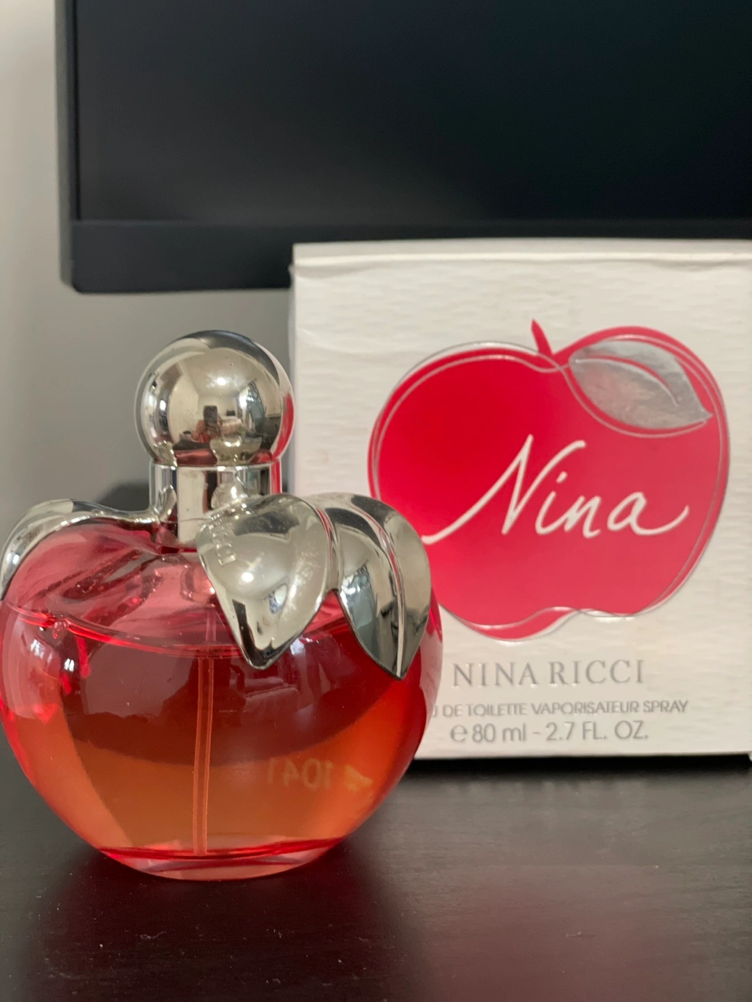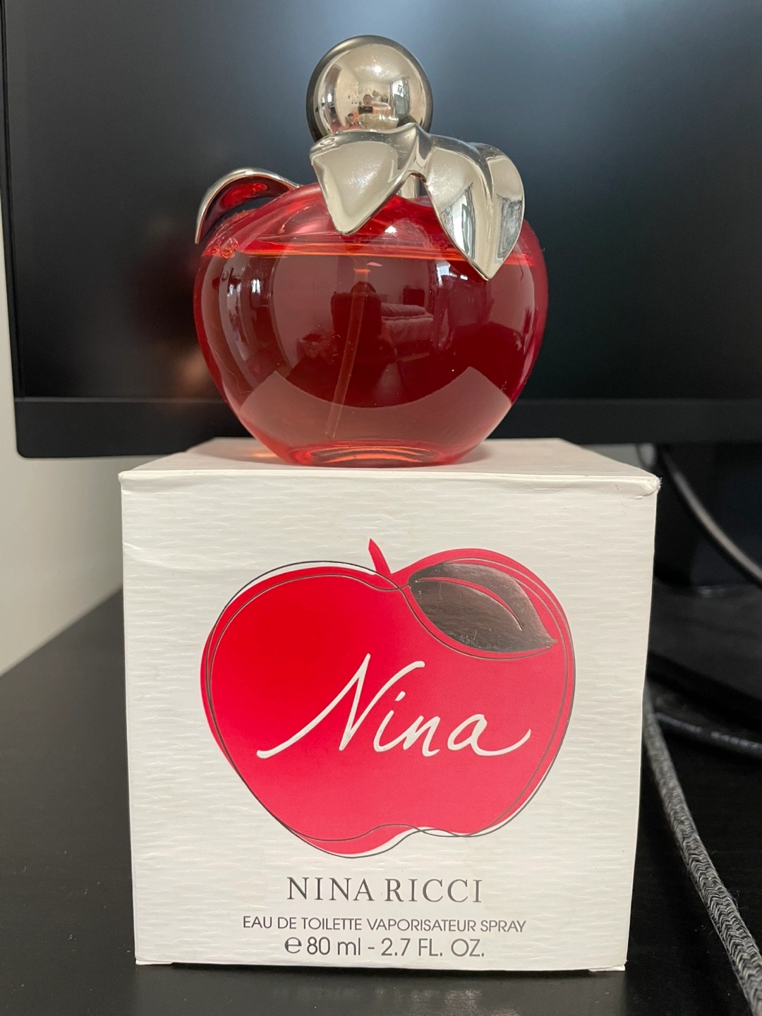 Selling a bottle of Nina Ricci Nina Eau de Toilette. It's a lovely fragrance in an 80ml bottle. The bottle is shaped like a red apple with silver leaves, so cute! Comes with the original box too. Perfect for anyone who loves a sweet and floral scent. Pickup only.