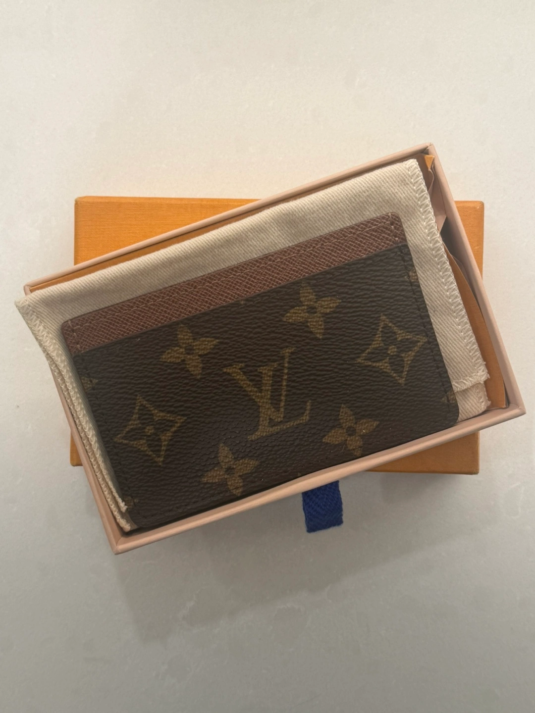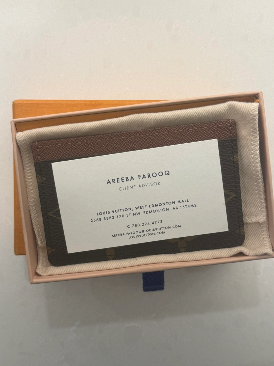 This is a Louis Vuitton card holder in the classic monogram canvas. It comes with its original box and dust bag. This holder is great for keeping your essential cards organized.