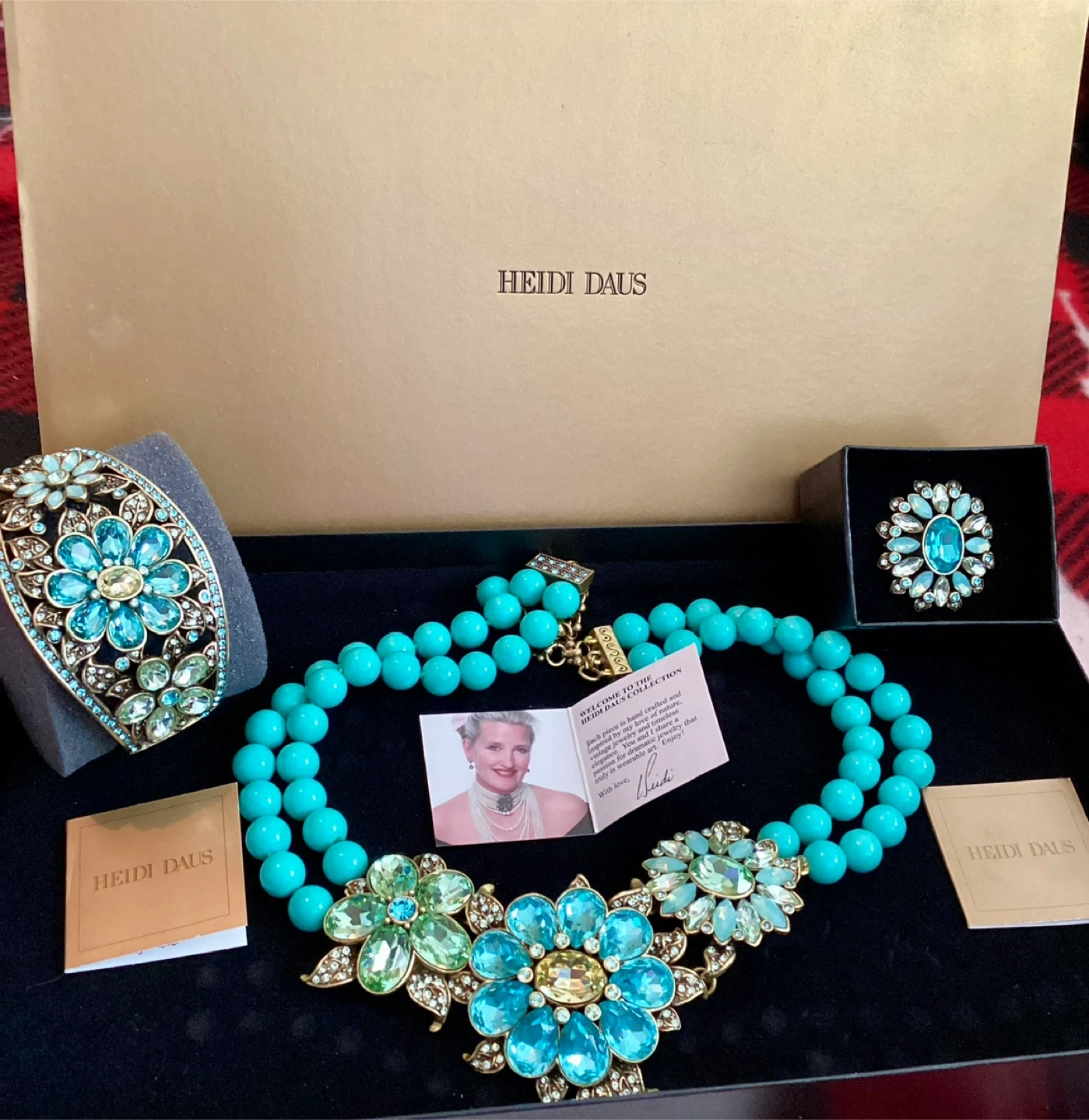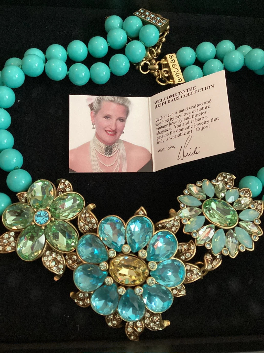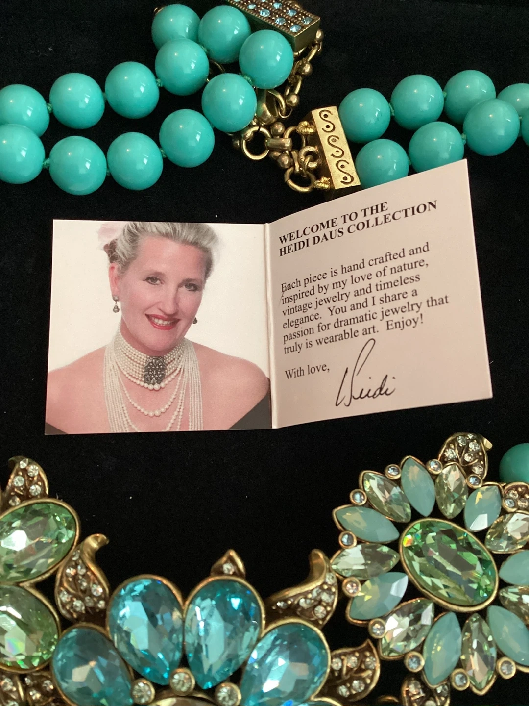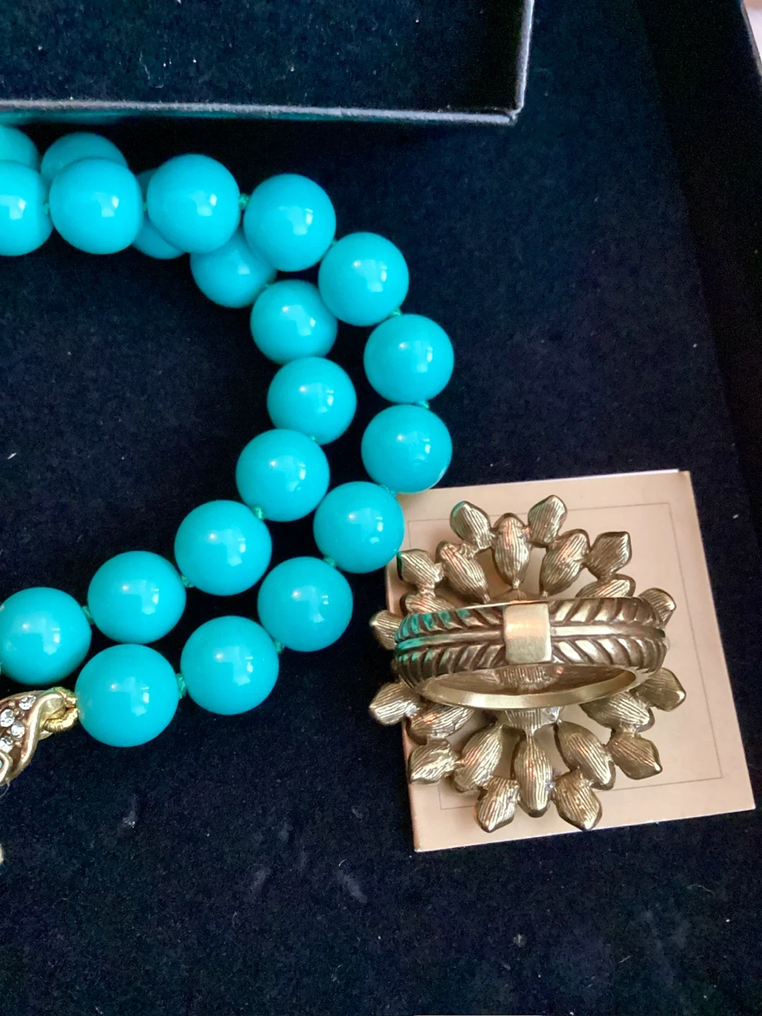 Heidi Daus Turquoise Beaded Necklace and Brooch Set