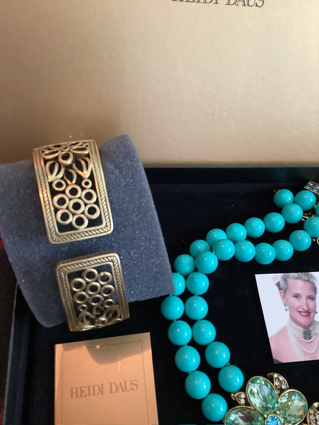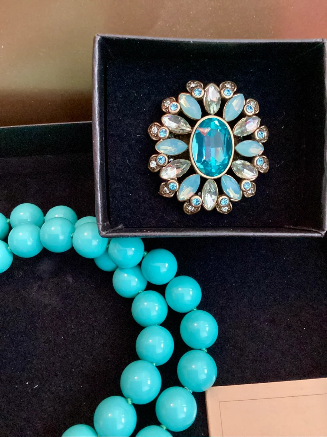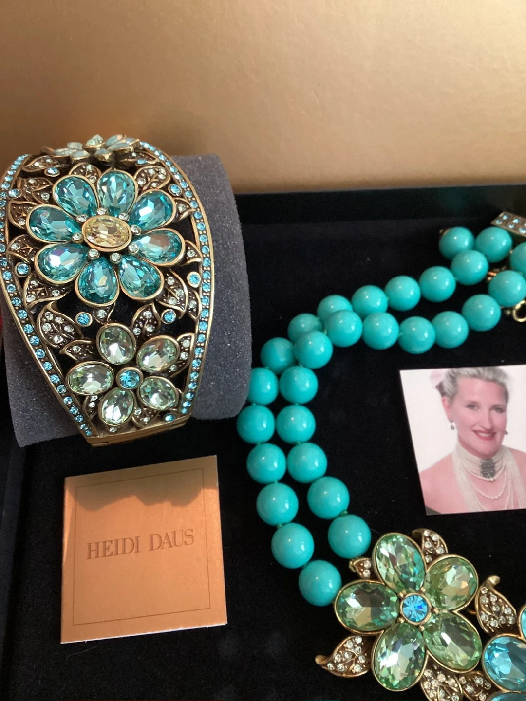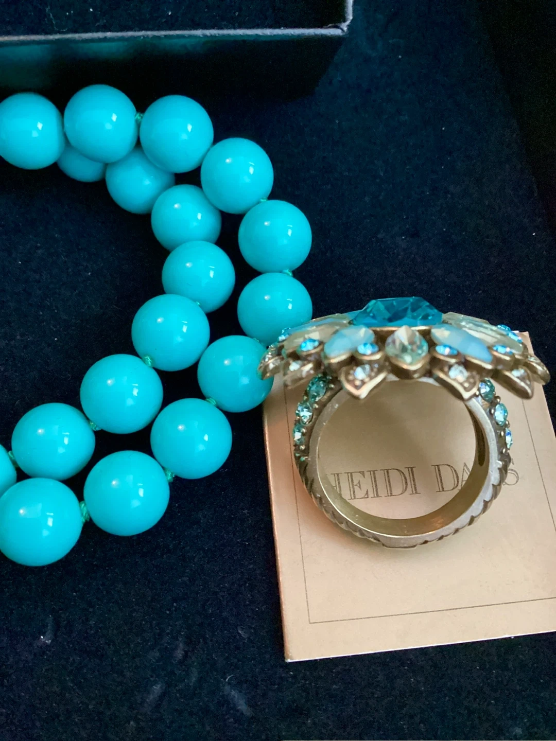 Heidi Daus Turquoise Beaded Necklace and Brooch Set