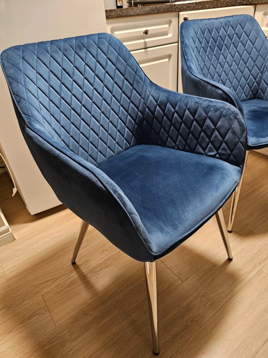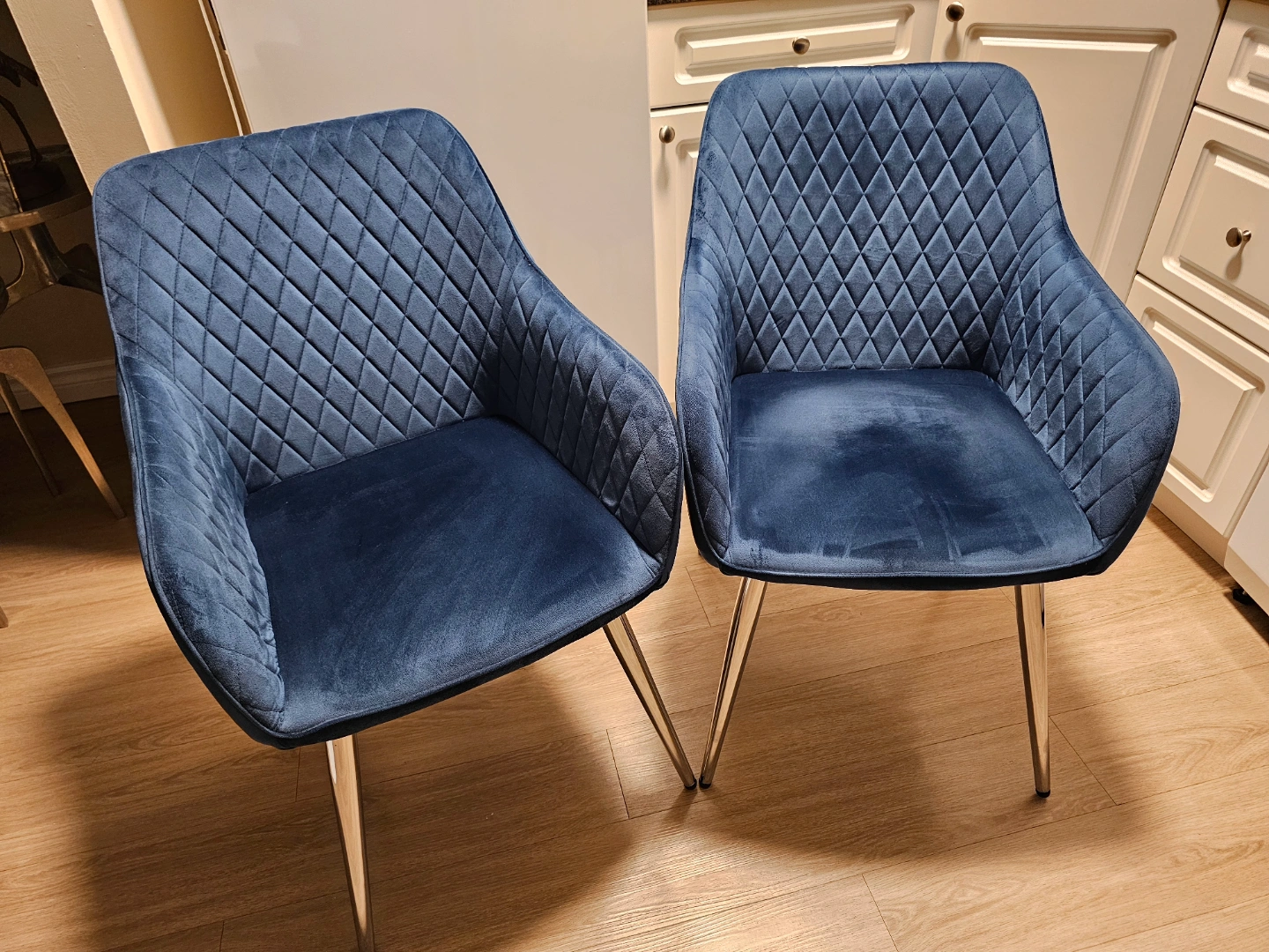 Looking to add a touch of luxe color to your space? I'm selling my beautiful set of two accent chairs in a rich blue teal velvet. They've been a lovely addition to my home and are now looking for a new one!