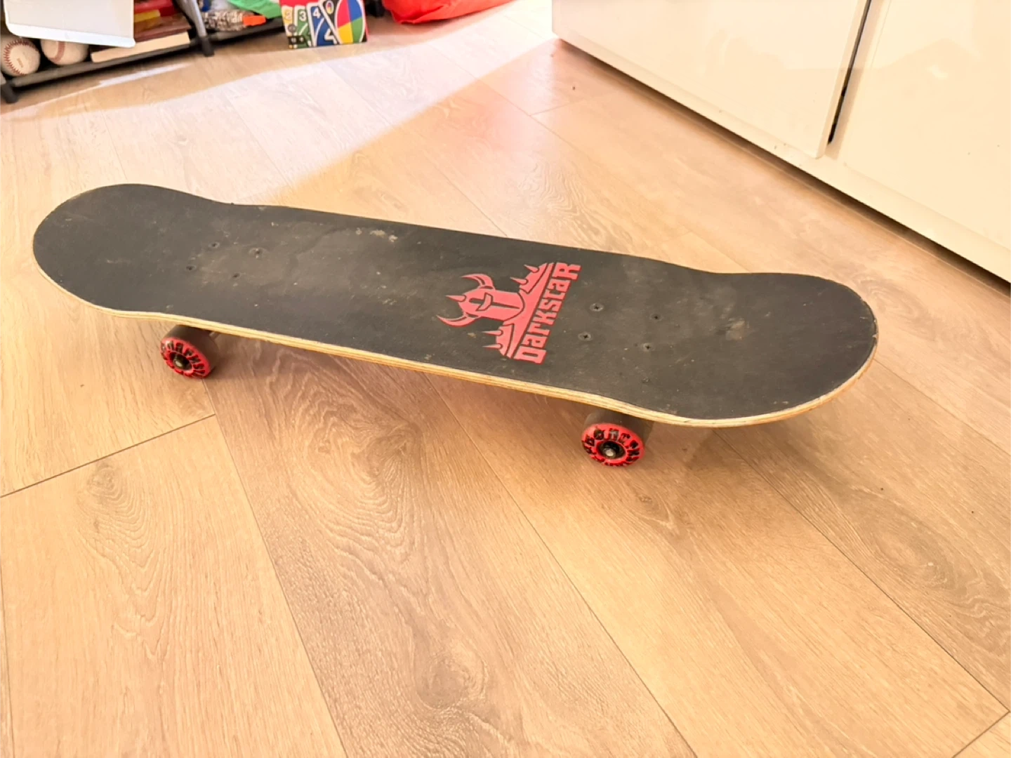 Selling a used Darkstar skateboard. It has some wear and tear, but still works great. Perfect for beginners or experienced skaters alike