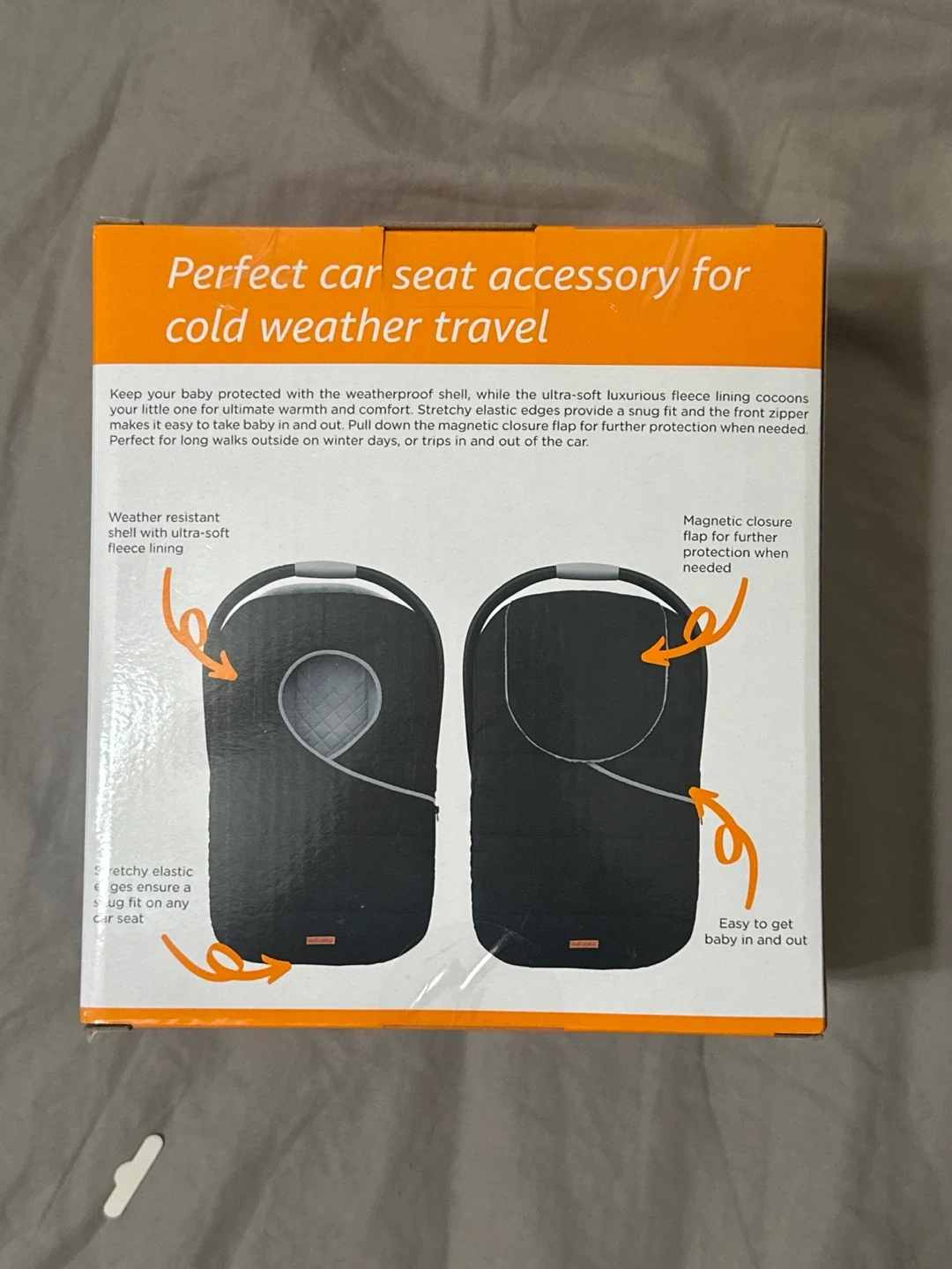 Keep your baby warm and protected with this weather-resistant car seat cover. It features a soft fleece lining for ultimate comfort and stretchy elastic edges for a snug fit. Magnetic closure flap offers extra protection when needed.