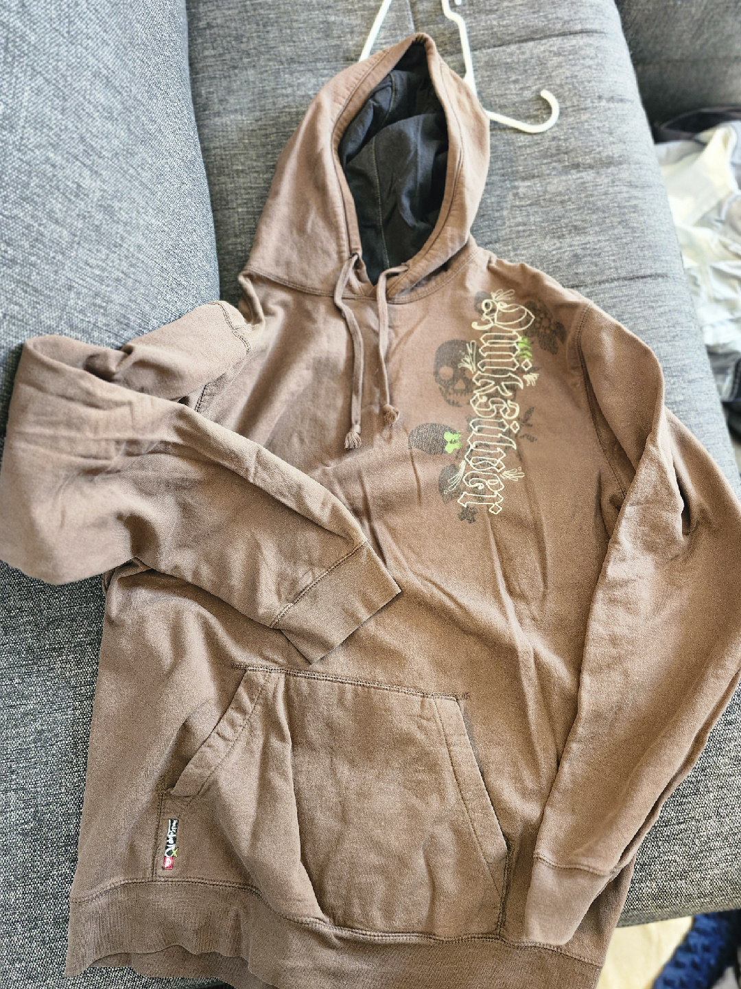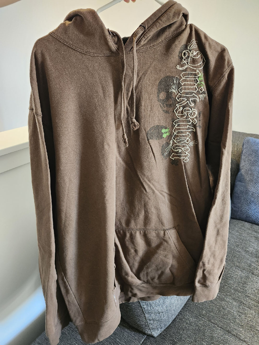 Selling a Quiksilver hoodie in size XXL. It's a brown colour with a cool design on the front. Perfect for staying cozy!