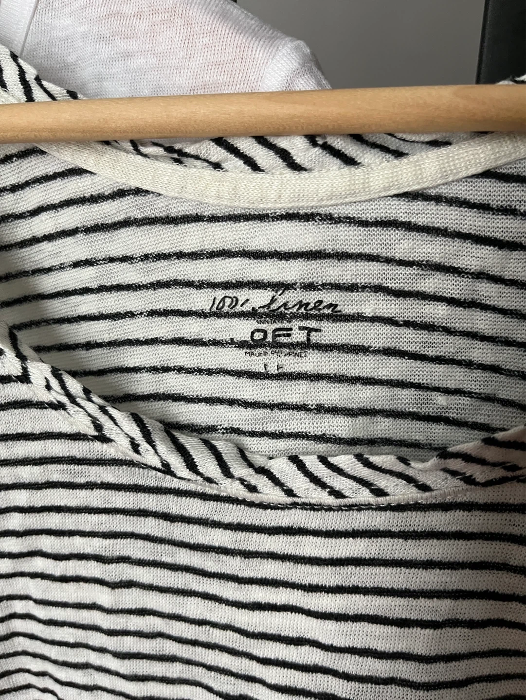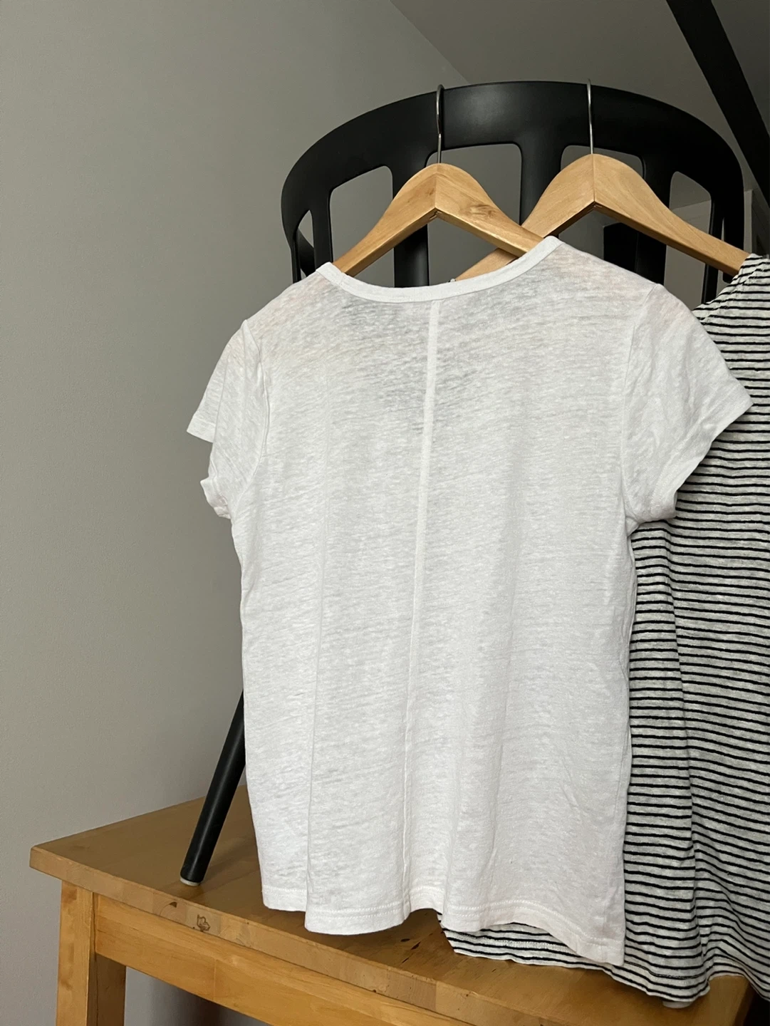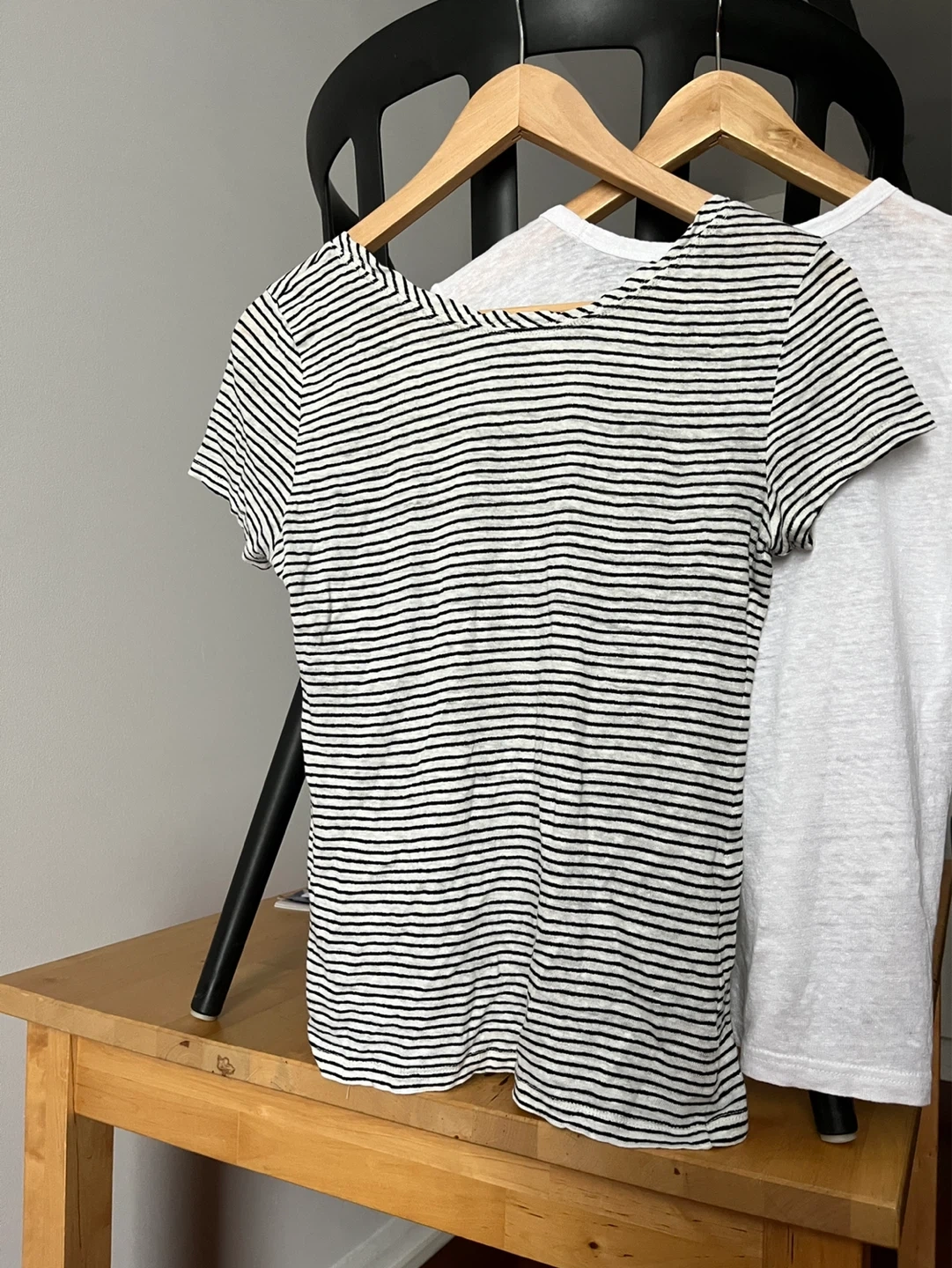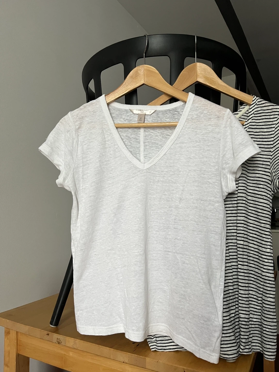 Banana Republic V-neck t-shirt in white. Loft Scoop neck in stripe. Both 100% Linen. Size S.