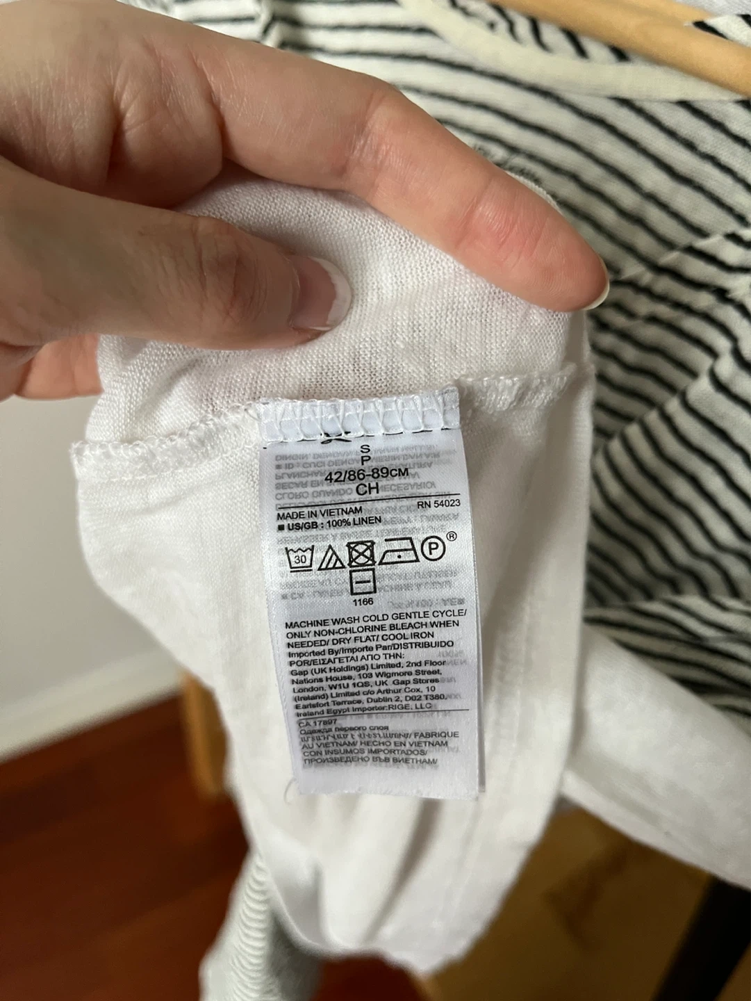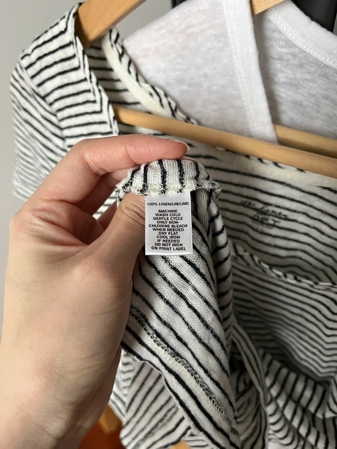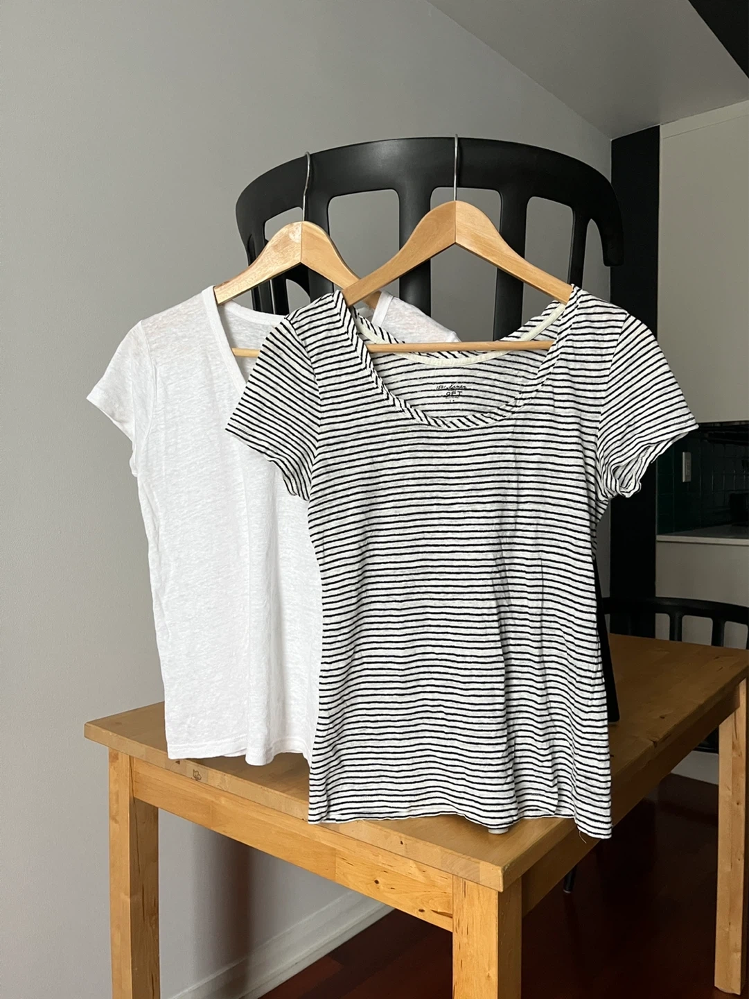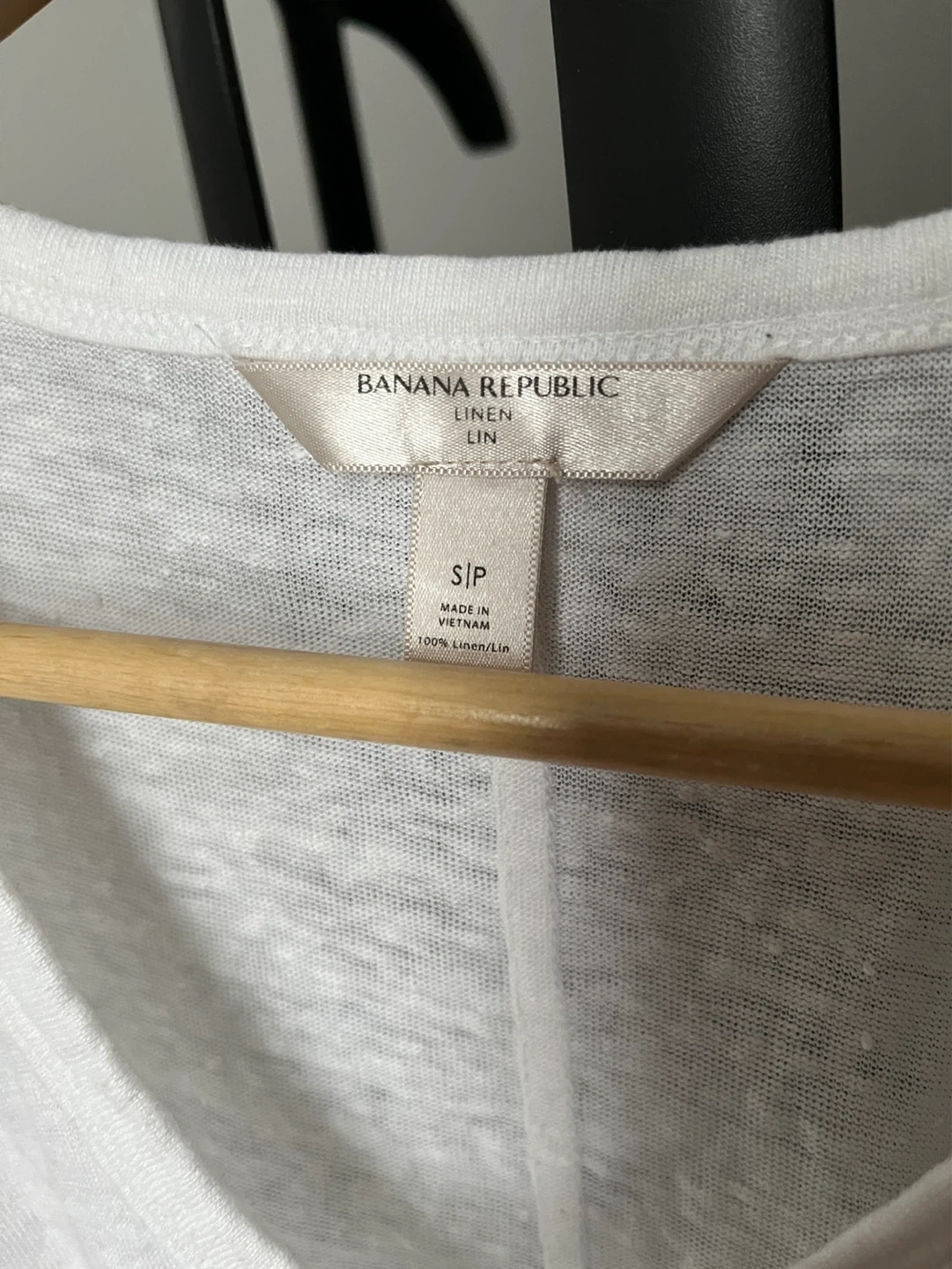 Banana Republic V-neck t-shirt in white. Loft Scoop neck in stripe. Both 100% Linen. Size S.