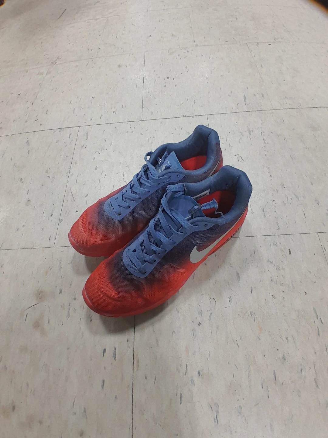 Nike running shoes feature a blue and red gradient design. They're built for comfort and performance on your runs. Mesh upper for breathability original Air Max Size 8.