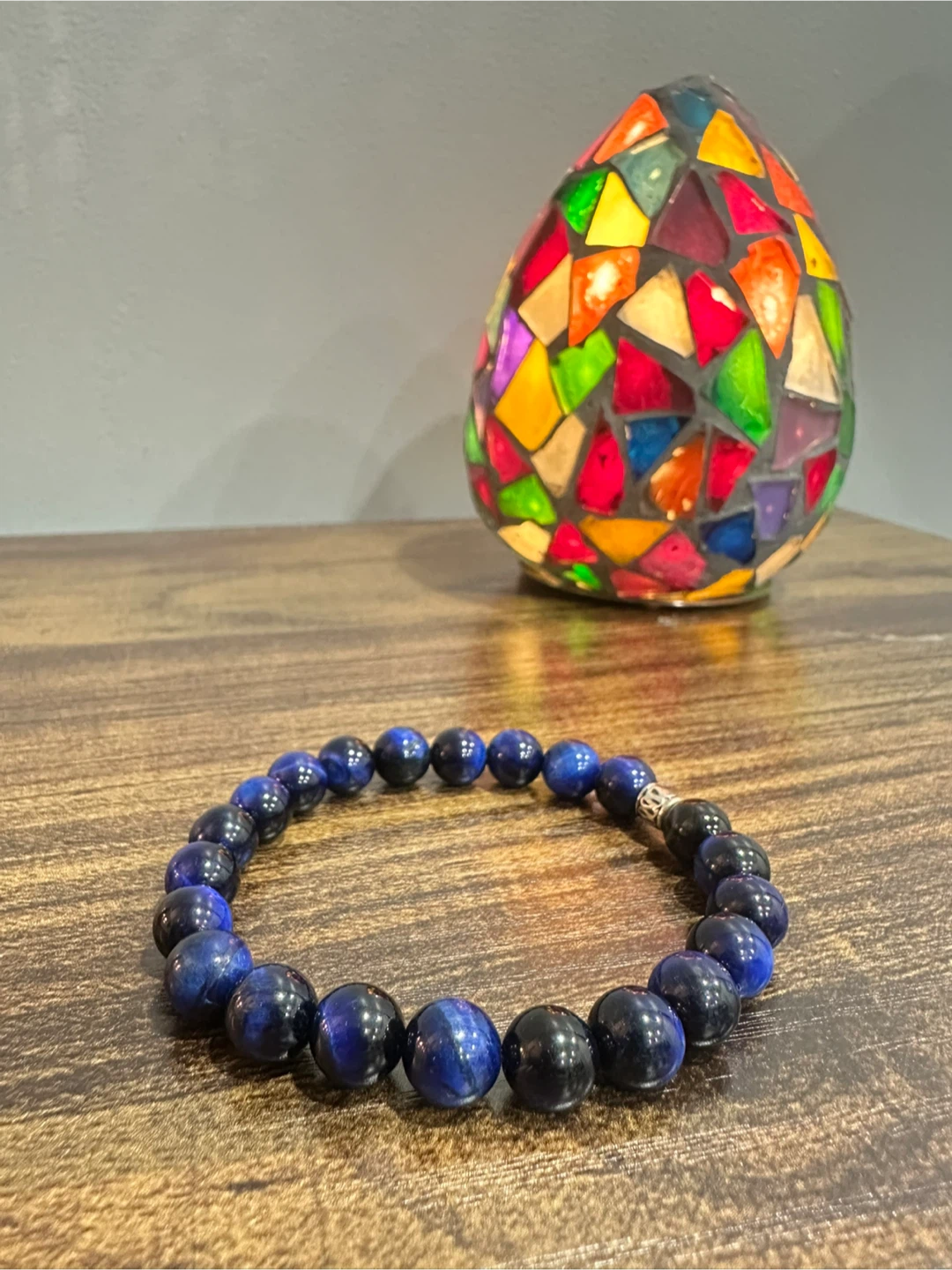 Here's a lovely handmade blue tiger's eye beaded bracelet!