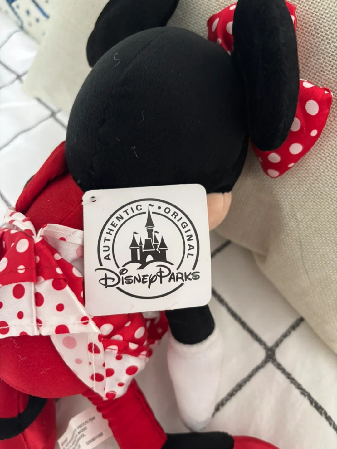 Selling a new cute Minnie Mouse plush from Disney Parks! Features a red and white polka dot dress and bow. Perfect for any Disney fan!