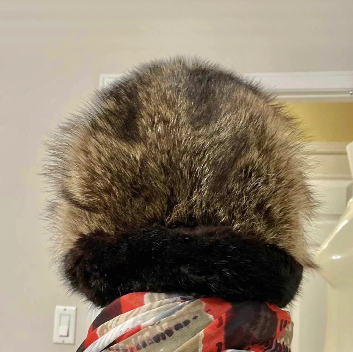 Cozy brown real fur winter hat with a dark trim. It's warm, stylish & perfect for cold weather!