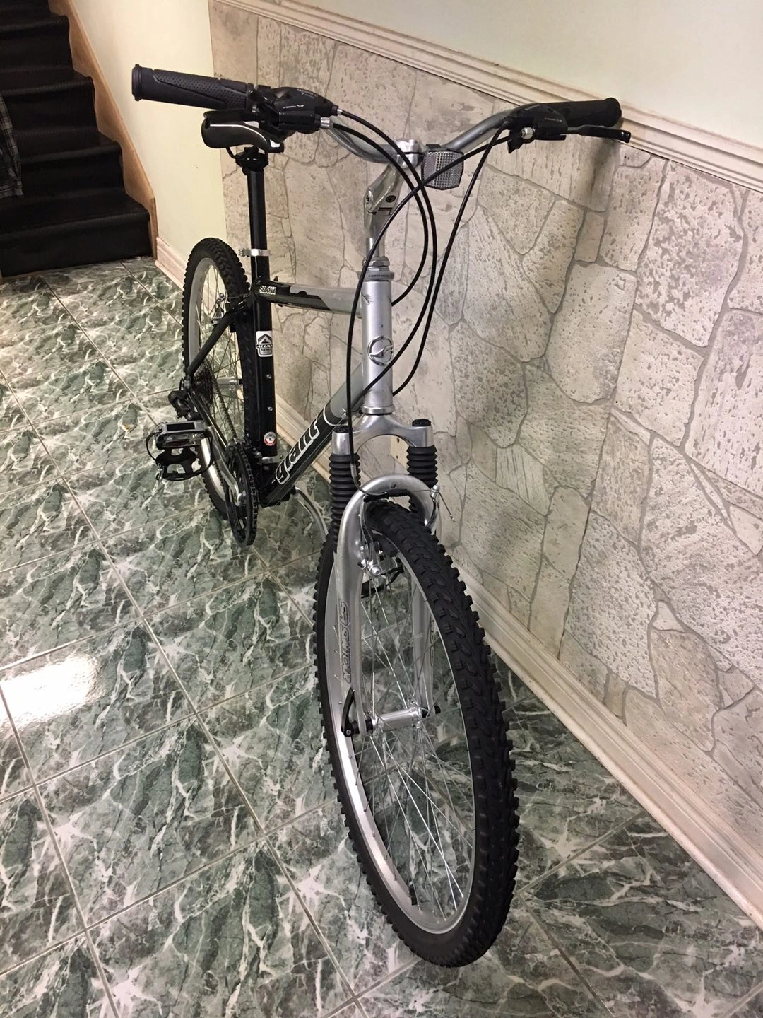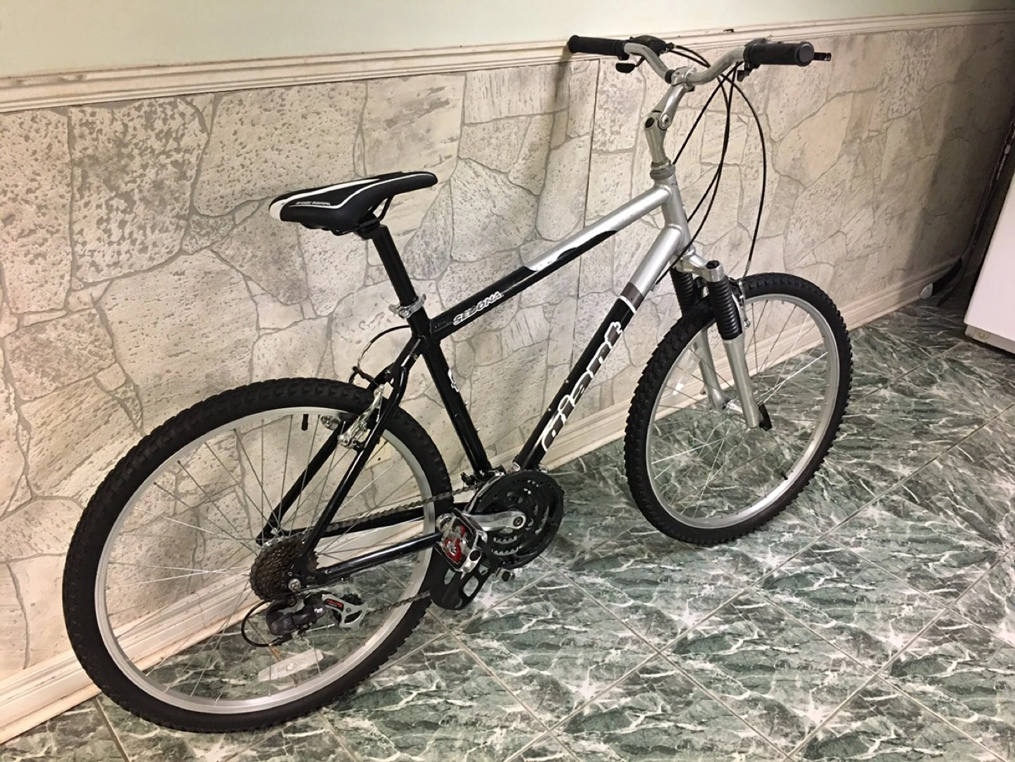 Giant Sedona mountain bike front shock, 26 inch wheel, 19 inch frame size, 21 speed, new inner gear/brake cables, chain , seat/seat pole/seat clamp, hand grips and new pedals/foot straps and shoe clips.