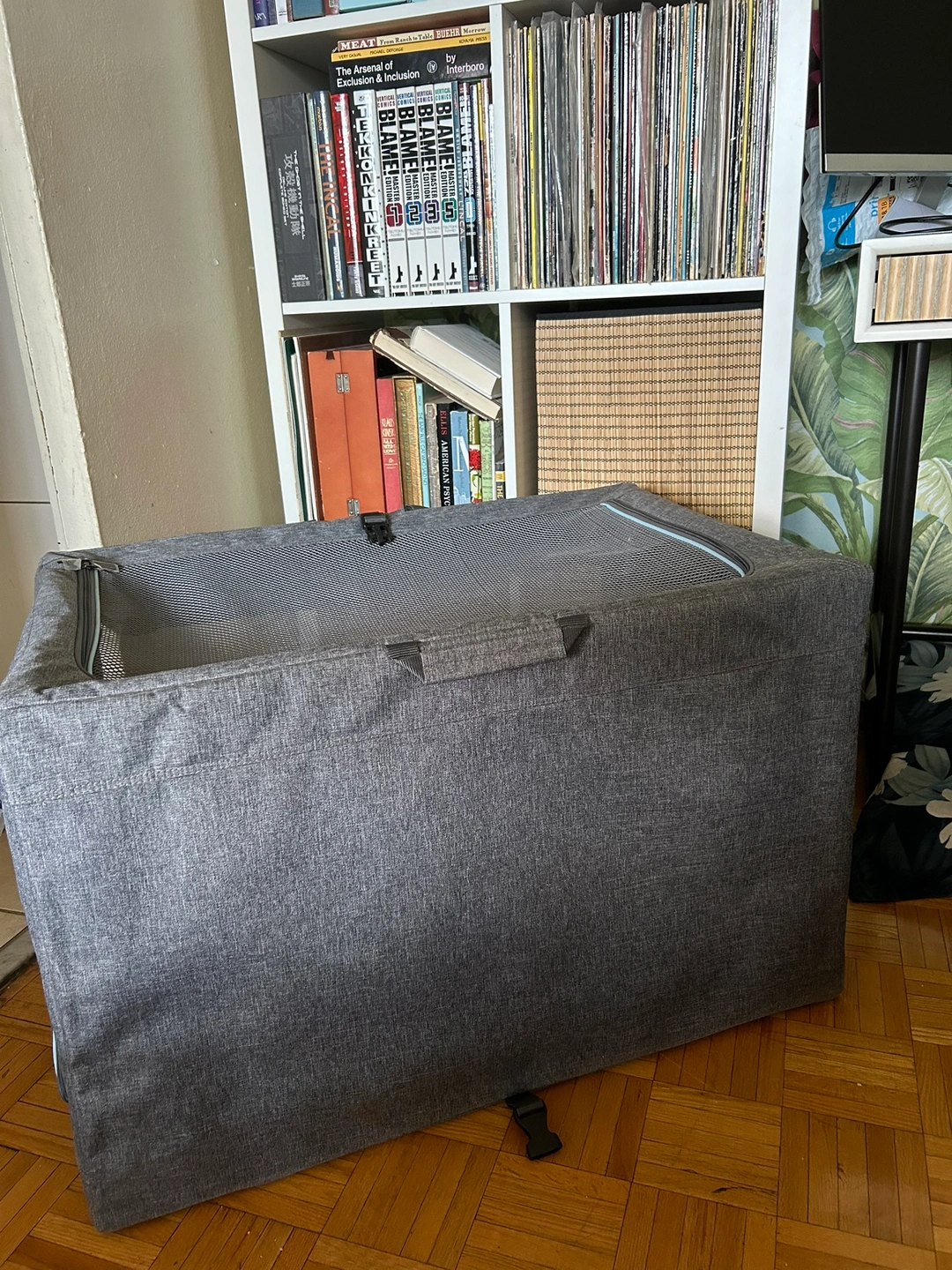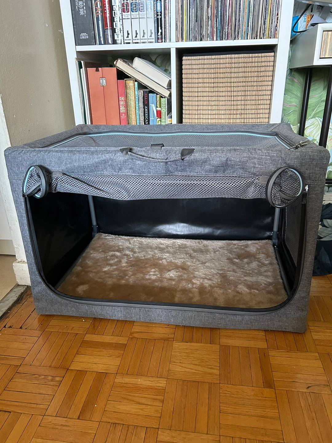 Good condition foldable pet crate. 30 x 20 x 19 Inches lightly used. Washable mat inside.