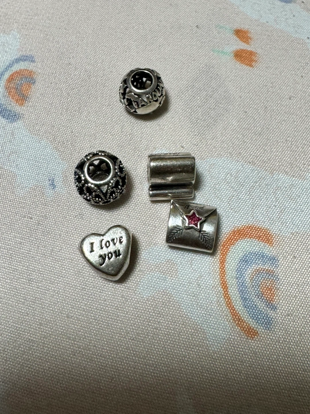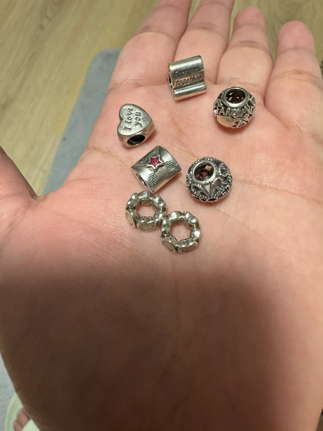 Selling a bundle of Pandora charms. All are in great condition and ready to add some sparkle to your bracelet! Includes a heart charm that says 'I love you'.