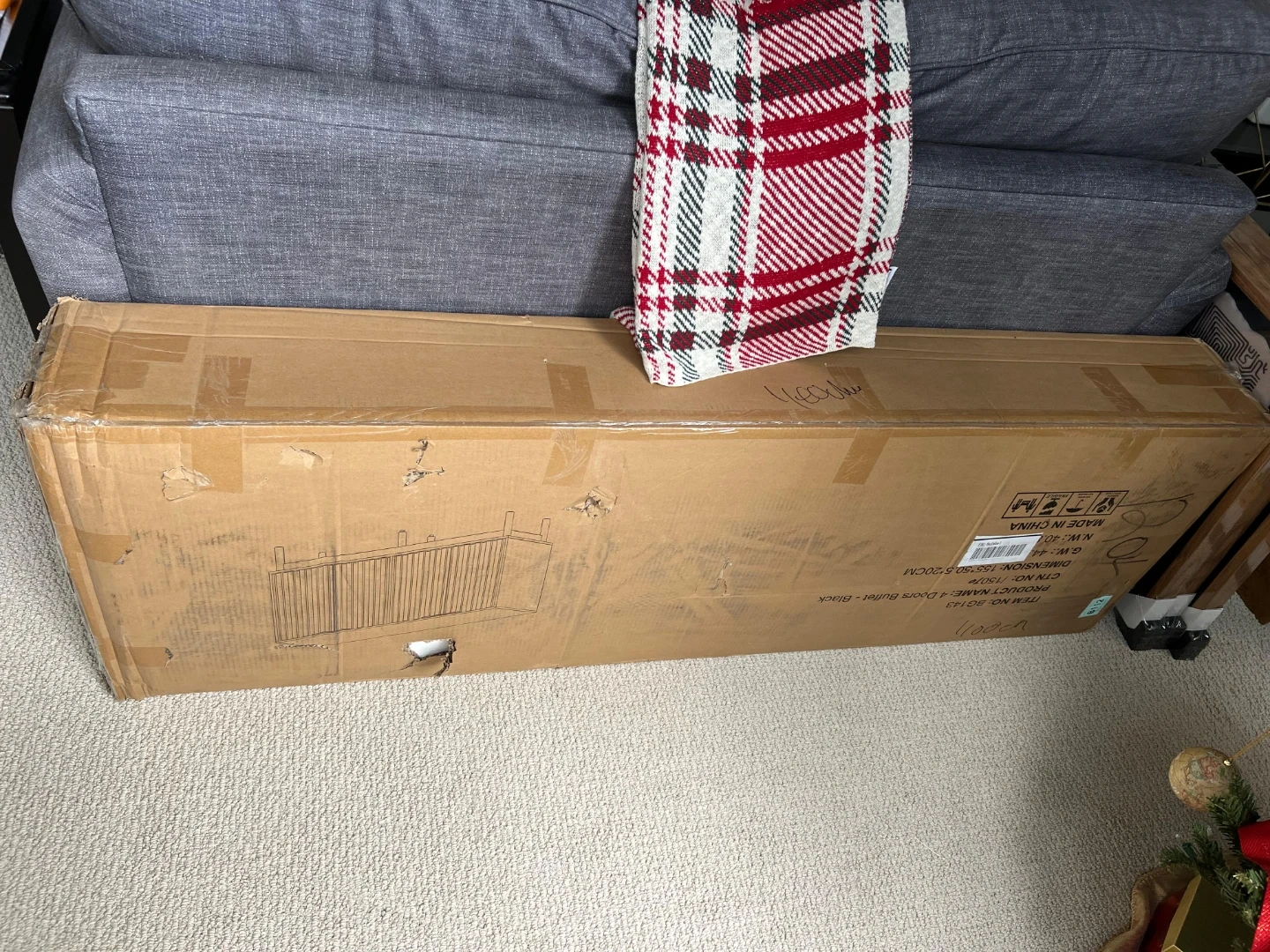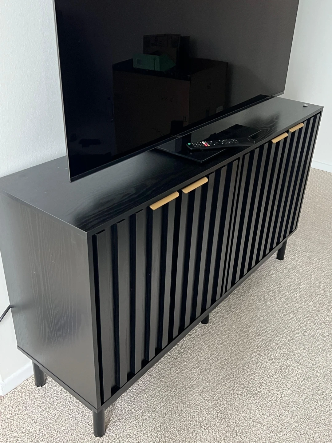 Purchased this for a tv stand. Love it. Had a tiny scratch so they sent new box. Decided we’ll just keep the one we put together. Unopened. No pets. No smoking home.
