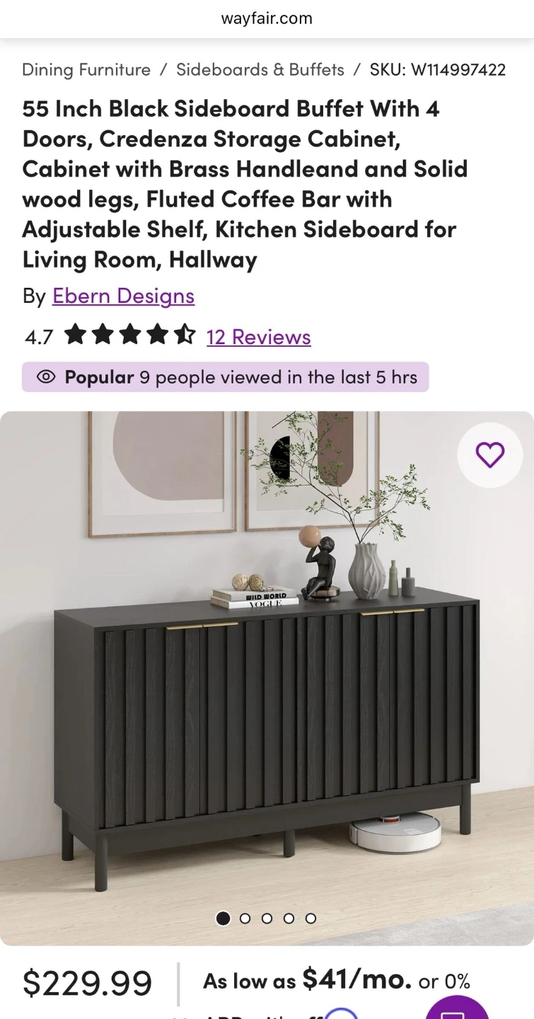 Ebern Designs 55 Inch Black Sideboard Buffet