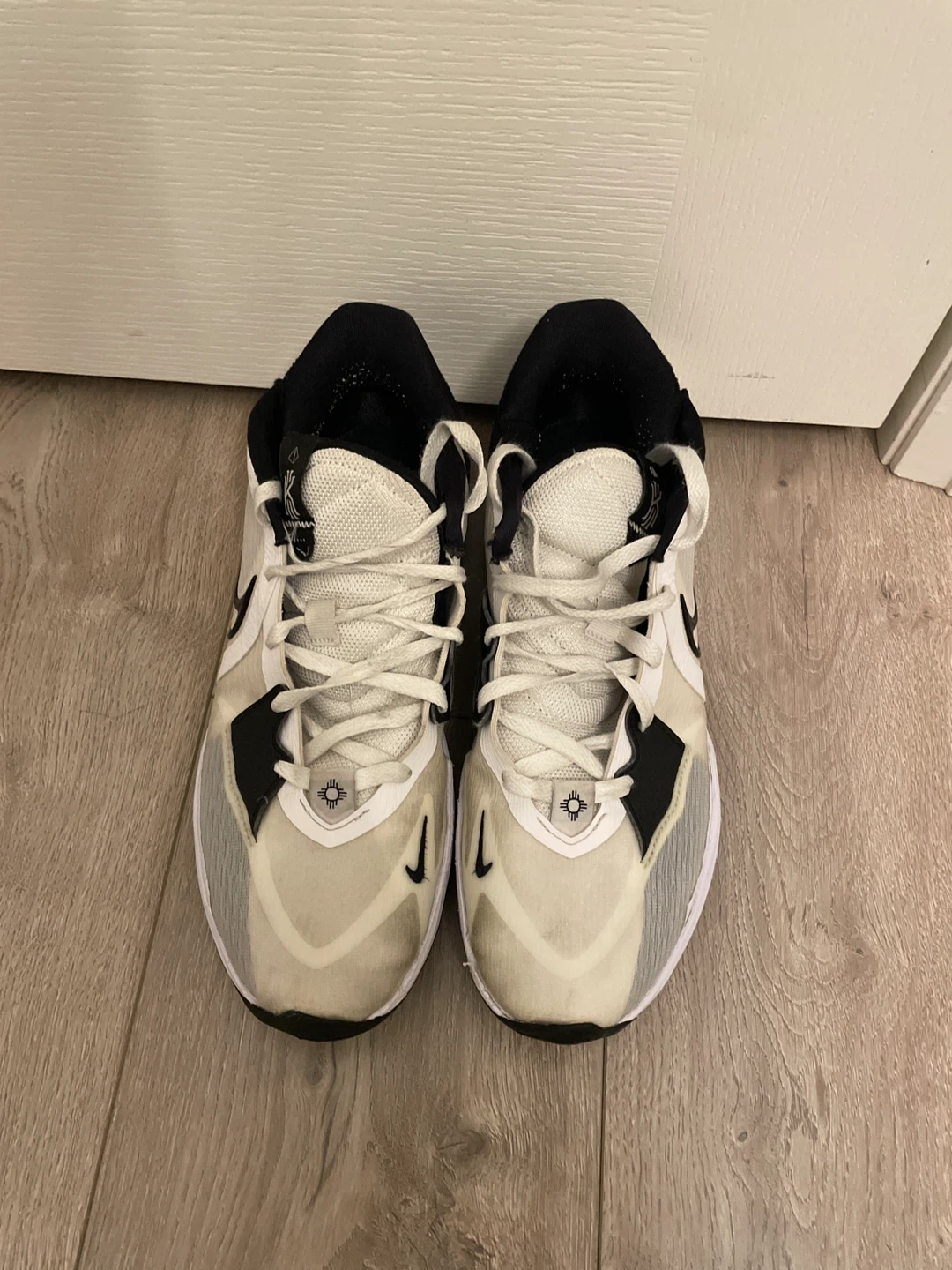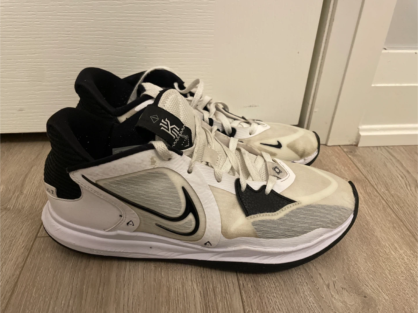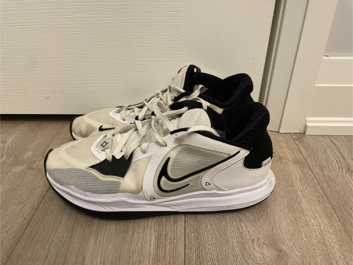 Nike Kyrie Low 5 basketball shoes in white and black. Men's Nike basketball shoe. No box.