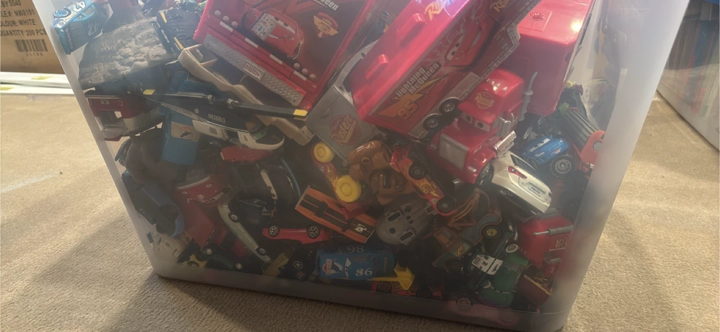 A collection of Disney Pixar Cars die-cast vehicles and accessories. Includes various characters and play sets. Great for young fans of the movies!