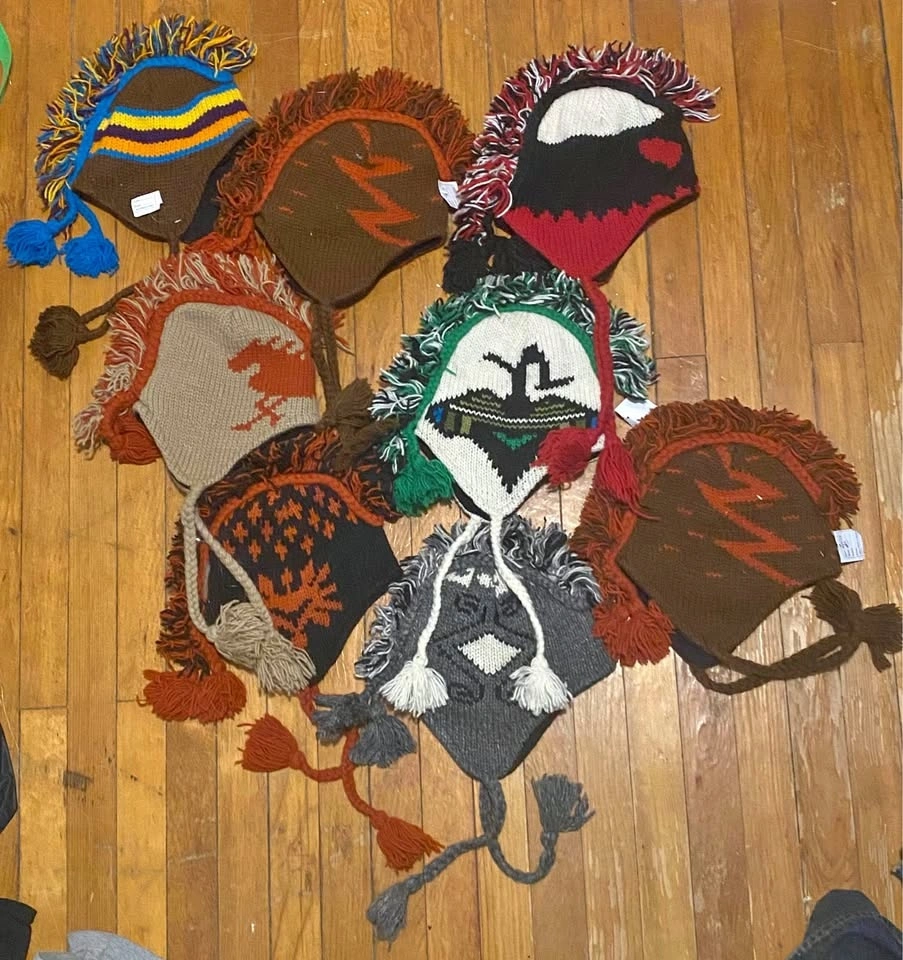 Brand new, HandKnit in Nepal with tags! Manufacture date on these is 2002! These are statement pieces, embrace the 90s/2000s punk culture in style! Designs are hand-knit on both sides of the beanie, very high quality and meticulously handcrafted! $25 each, or 3 for $60!