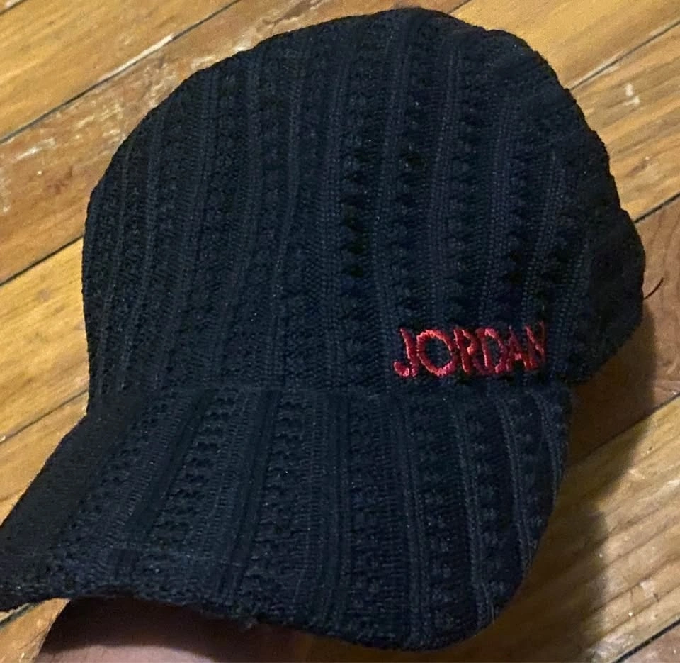 This 90's Jordan Knit Ball Vintage Cap is in amazing, barely worn condition, rated 9.5/10. It's a size Small-Medium with a stretchy knit material that molds to most head types, making it very comfortable and stylish. This is a super rare piece that's hard to come by.