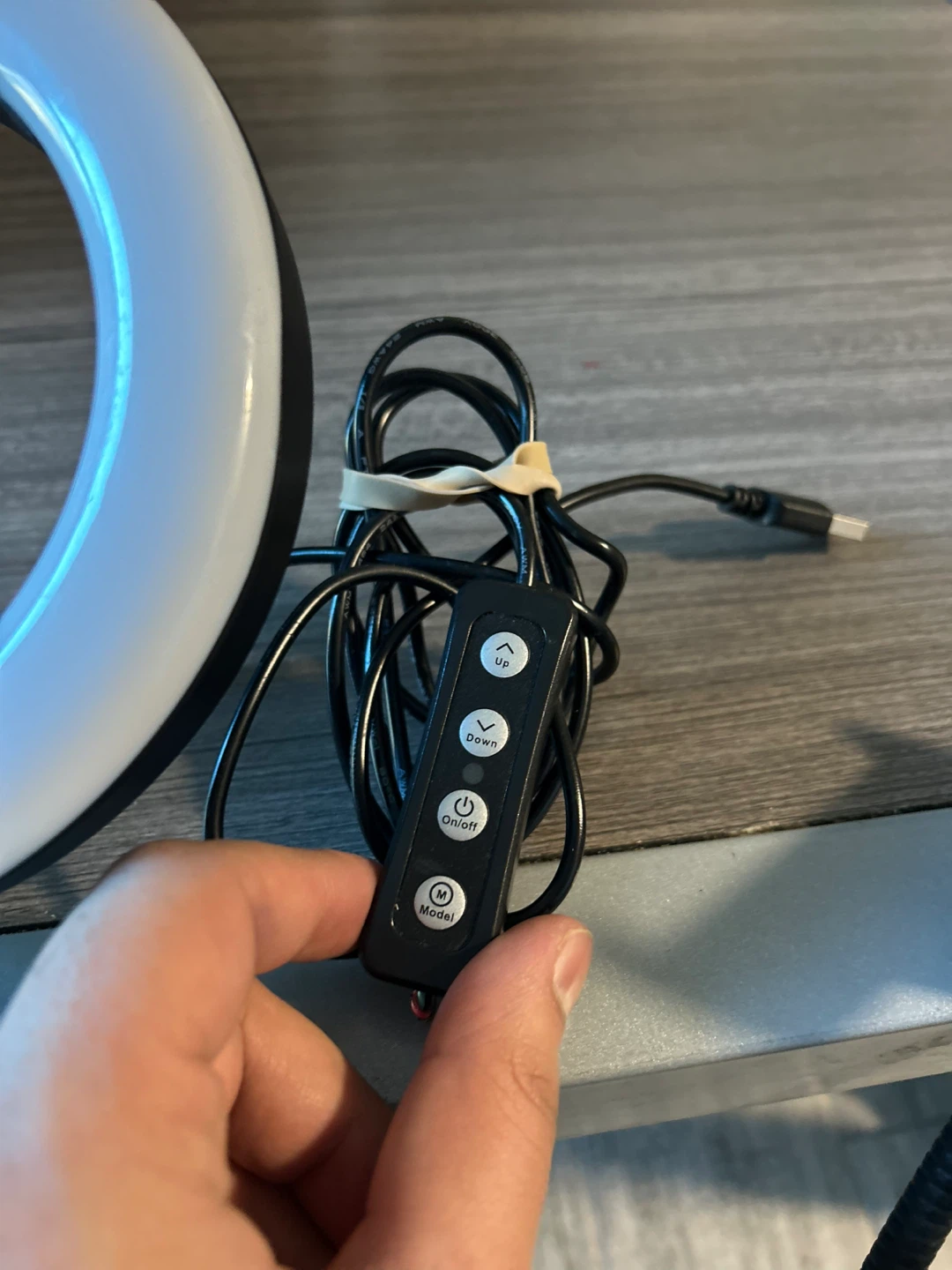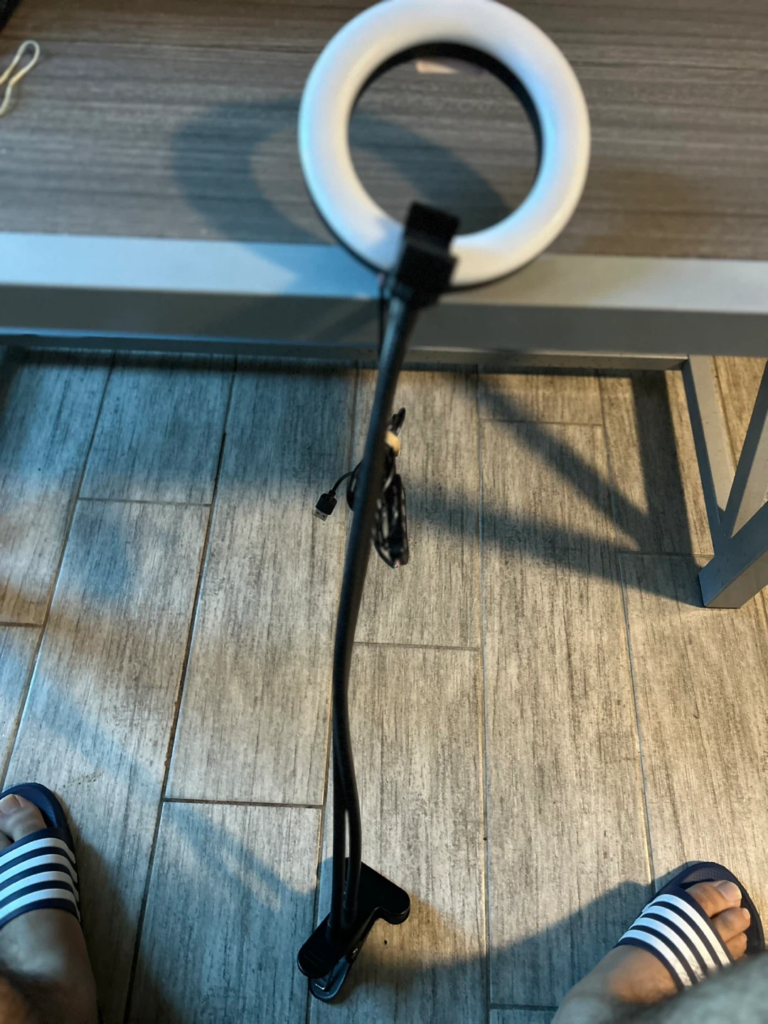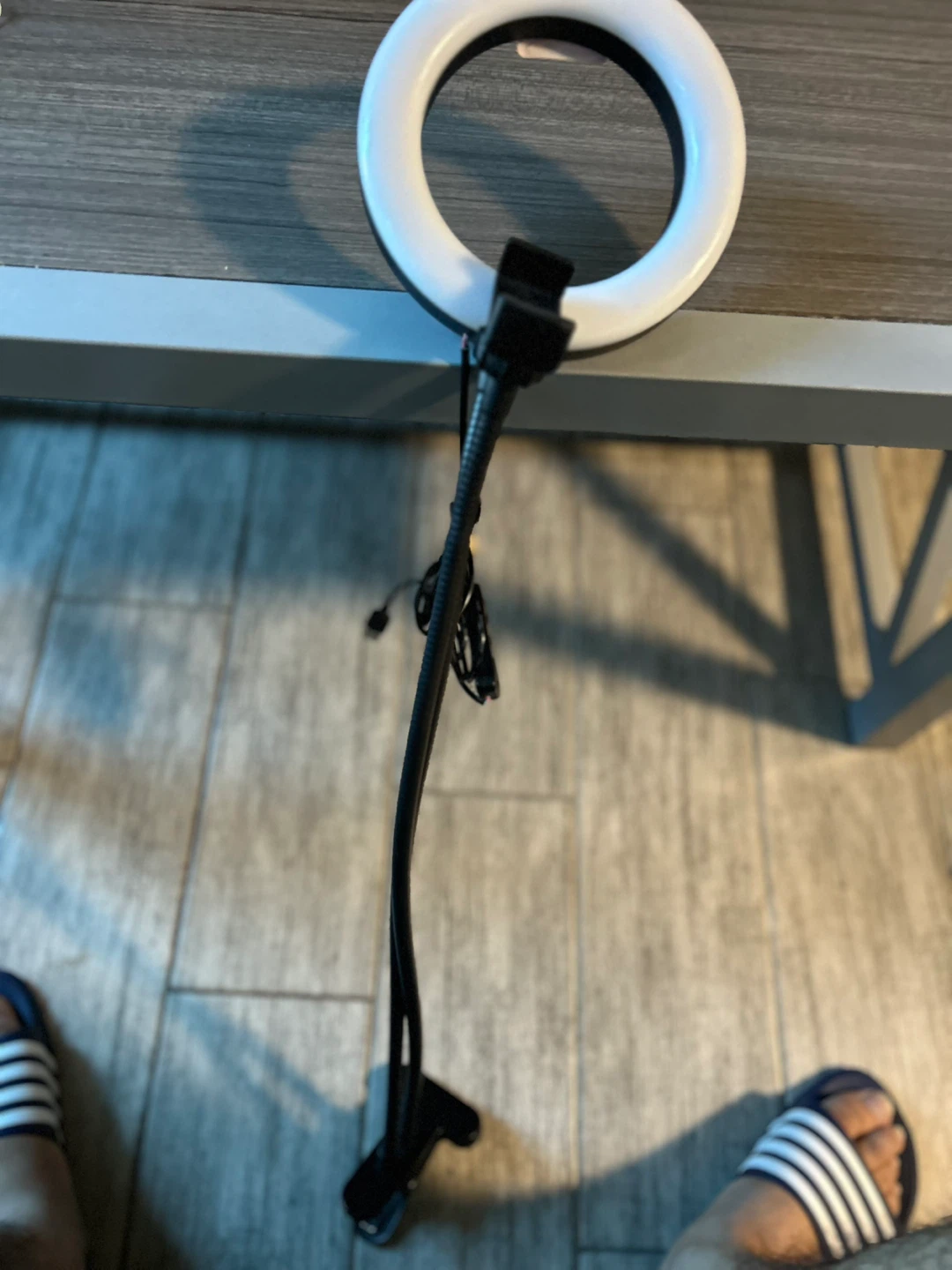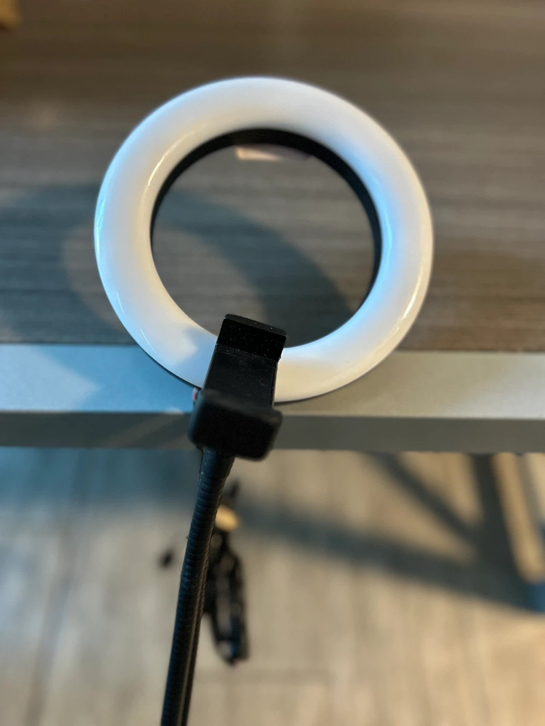 This is a clip-on ring light. It features a flexible gooseneck for easy adjustment. Great for content creation or video calls!