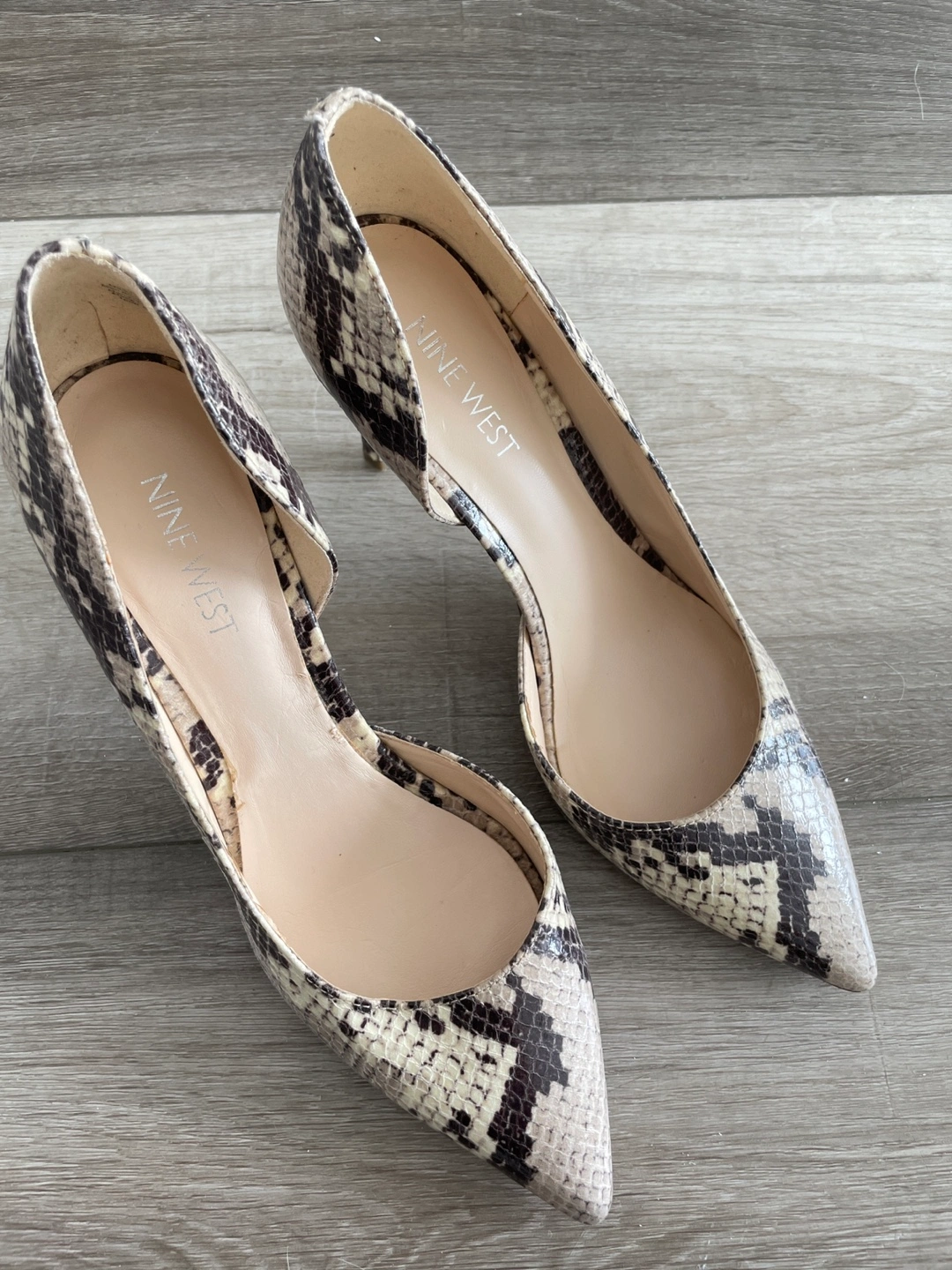 Selling a pair of Nine West heels with a snakeskin print! They're a size 6.5 and in great condition. Perfect for adding a bit of flair to any outfit!