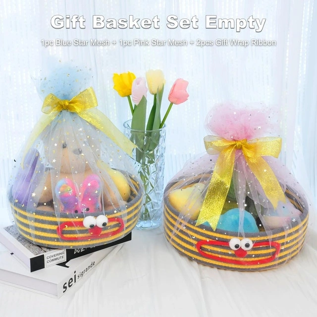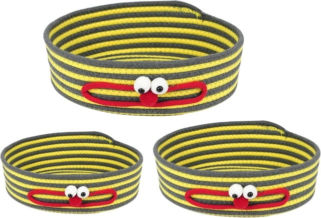 3 pcs Cute Small Storage Baskets - Round Woven Cotton Rope Baskets with Silly Faces, Decorative Gift Box with Ribbon, Dog Toy Organizer, Fruit, Remote & Desk Storage (Yellow) - Ideal Gift Basket - Color box packing, come with 1pc blue mesh, 1pc pink mesh and 1 gift wrap ribbons. This set of 3 rope nursery storage basket can be your best gift choice for Valentine's day, Easter, Graduation Gift, Christmas, New Year, baby shower, birthday.