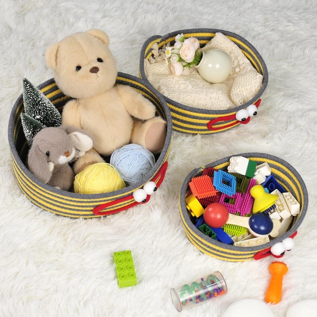 Attractive Small Basket Set - Unique image design and fashionable clashing color matching, this storage basket not only can organize many loose items, keep your life organized, but also can be used as a decoration for living room, bedroom, kitchen, office, display cabinet.