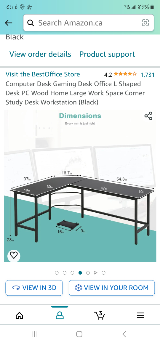 L-Shaped Desk (dimensions in picture) fits perfectly underneath
