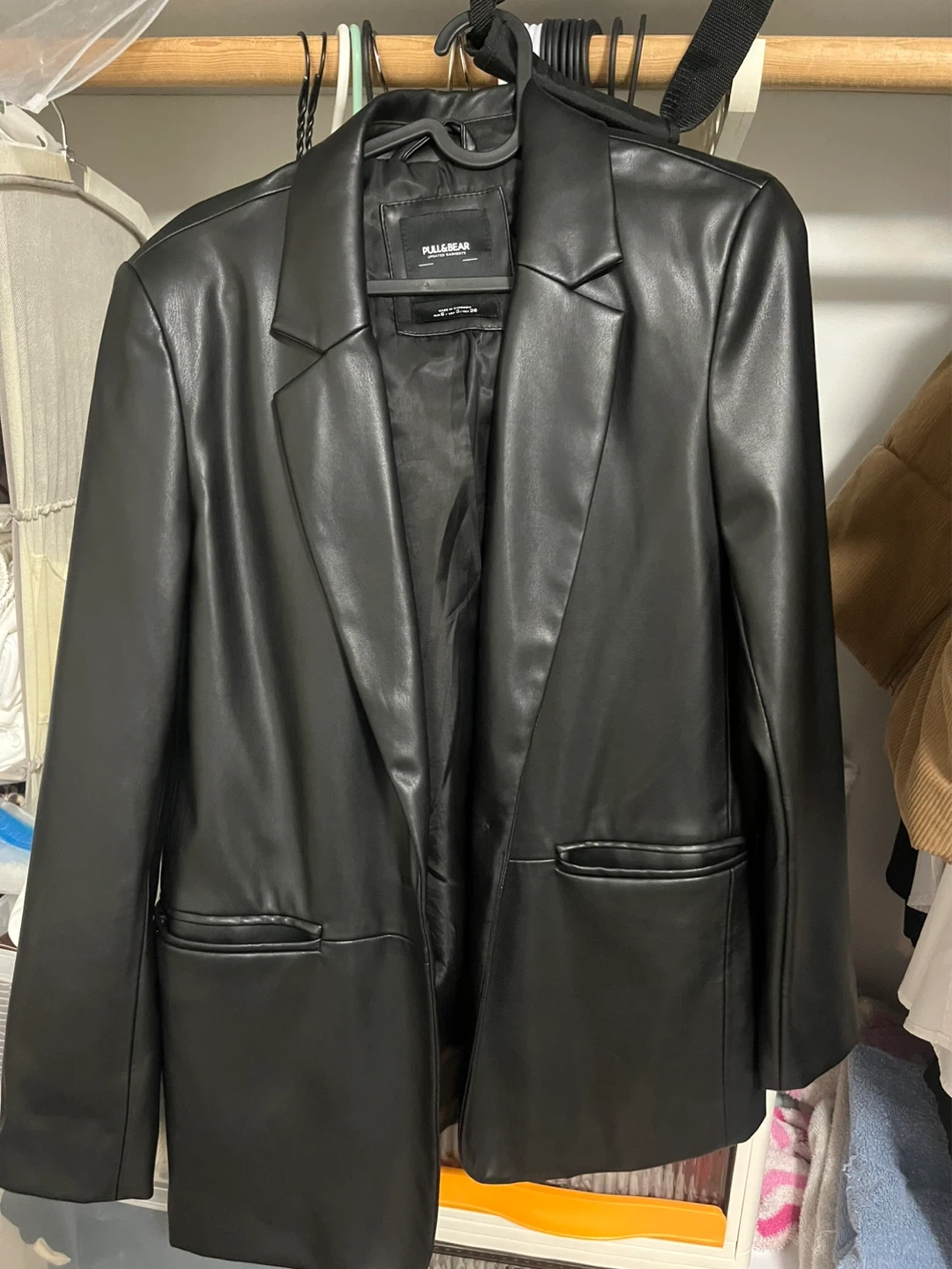 PULL&BEAR Black Faux Leather Blazer - Size S