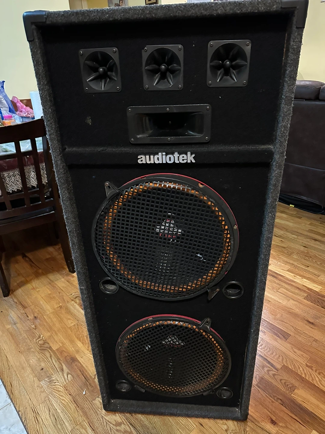 Buy & SellAudiotek PA Speaker 2 18 inch’sAudiotek PA Speaker 2 18 inch’s$87Selling an Audiotek PA speaker. It has a black and gray finish. Great for parties or eventsConditionGoodBrandAudiotekWHERE TO MEETUnion city NJView MapSELLERverifiedFernandoUnion City721 review1 chats·2 favorites·83 viewsSEND CHAT TO SELLERHi Fernando! I’m interested in your listing.Hi Fernando! I’m interested in your listing.Get the Karrot app to chatSign In to chat