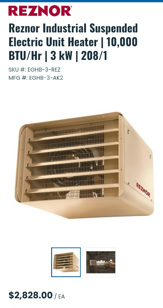 Reznor EGHB3AK2HK2-BT1 Industrial Suspended Electric Unit Heater