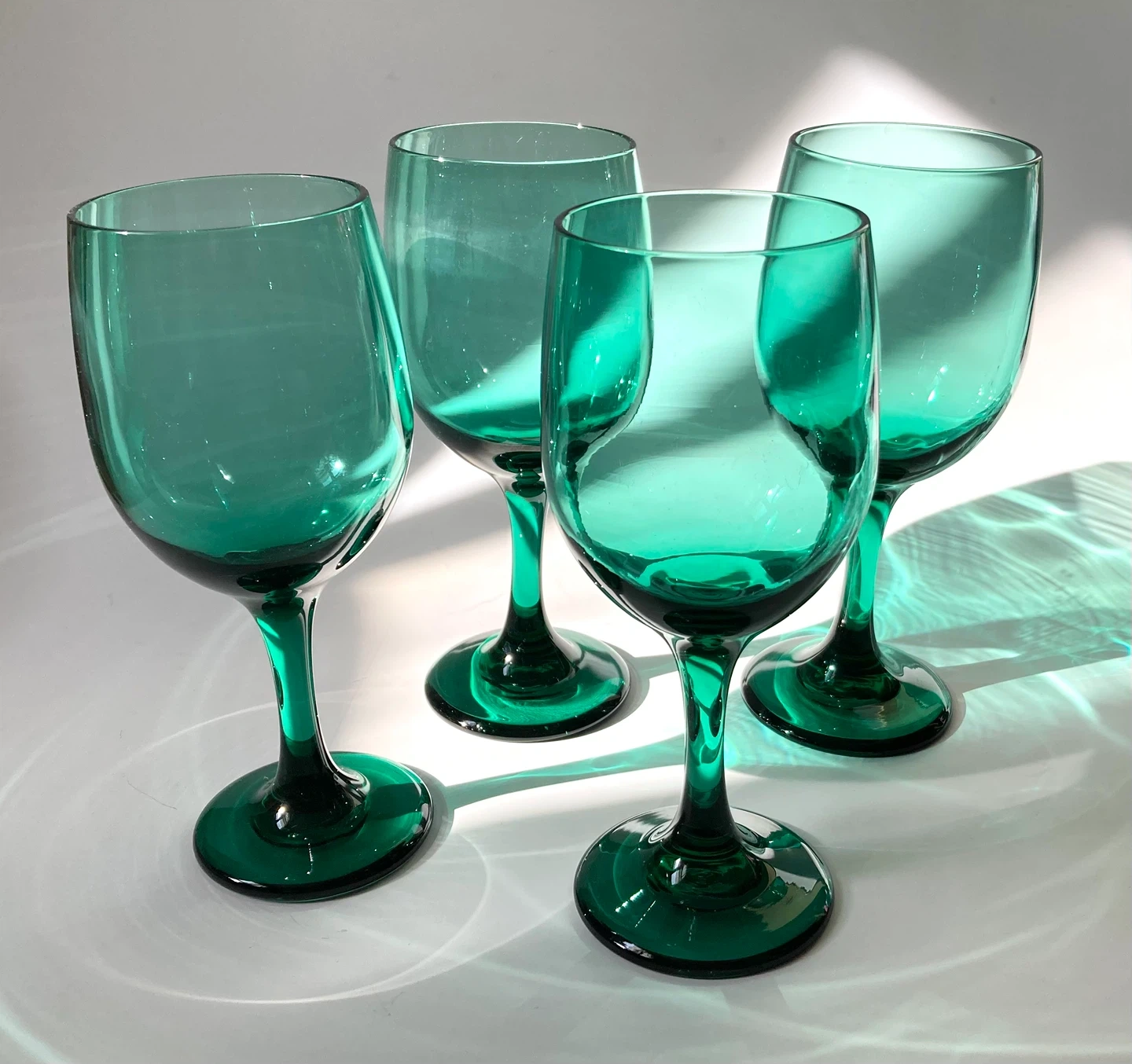 Vintage Set of 4 Libbey Teal Green Wine Glasses🧡