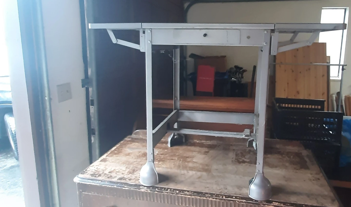 1 / 11 / 1Buy & SellMetal Folding Table with DrawerMetal Folding Table with Drawer$50This is a metal folding table. It's silver in colour and has a small drawer. Legs fold for easy storage.ConditionGoodWHERE TO MEETMountain Meadows Elementary SchoolView MapSELLERverifiedleslieMountain Meadows851 review1 chats·0 favorites·28 viewsSEND CHAT TO SELLERHi leslie! I’m interested in your listing.Hi leslie! I’m interested in your listing.Get the Karrot app to chatSign In to chat