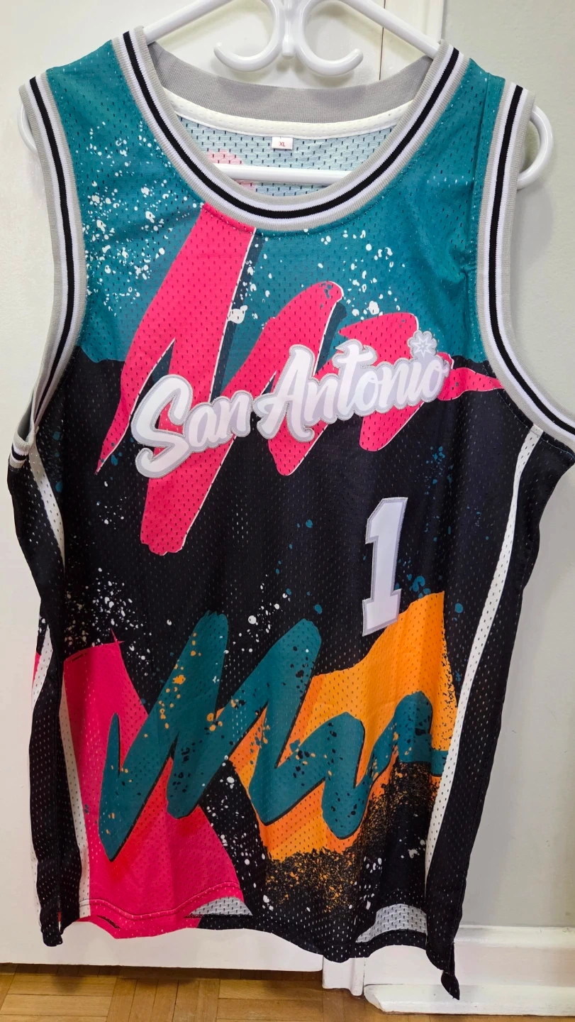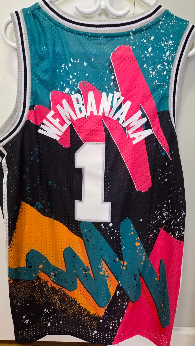This basketball jersey is brand new and never been worn. This is size XL but could be used by Large as well. Just perfect timing to wear for the NBA season, or for indoor/outdoor game play. Wemby is one of the famous superstars right now, taking over the league with his phenomenam skills, and the SA Spurs is always a favorite team. Please don't ask for a lower price; won't negotiate.