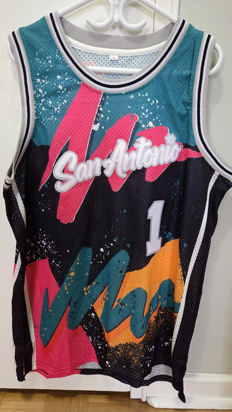 This basketball jersey is brand new and never been worn. This is size XL but could be used by Large as well. Just perfect timing to wear for the NBA season, or for indoor/outdoor game play. Wemby is one of the famous superstars right now, taking over the league with his phenomenam skills, and the SA Spurs is always a favorite team. Please don't ask for a lower price; won't negotiate.