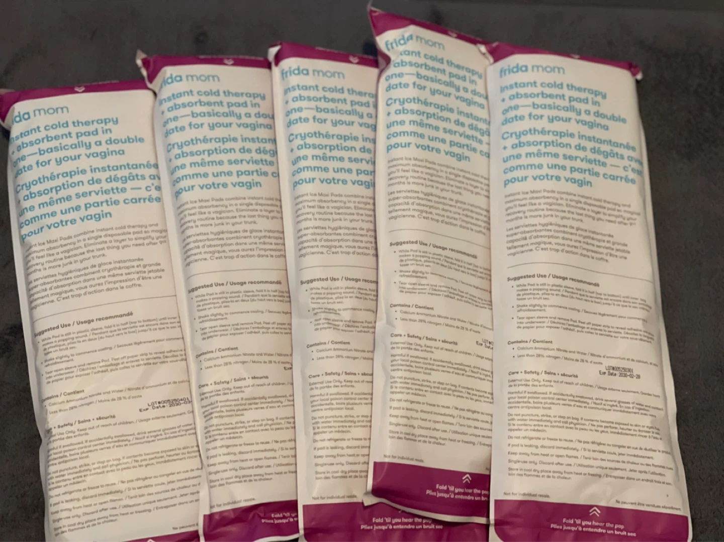 Instant cold therapy and absorbent pad. Designed for postpartum recovery. Offers 2-in-1 cooling and absorption. 5 pcs.