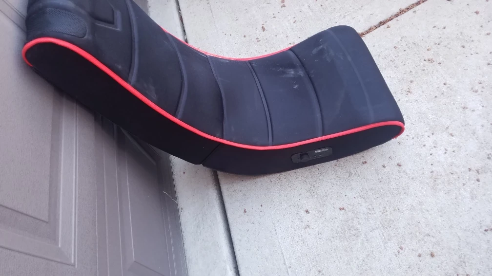 This XP Series gaming chair offers a comfortable seating experience. It features built-in audio and connectivity ports for easy setup. Black with red trim.