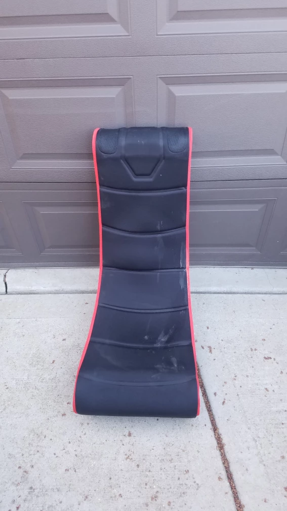 This XP Series gaming chair offers a comfortable seating experience. It features built-in audio and connectivity ports for easy setup. Black with red trim.