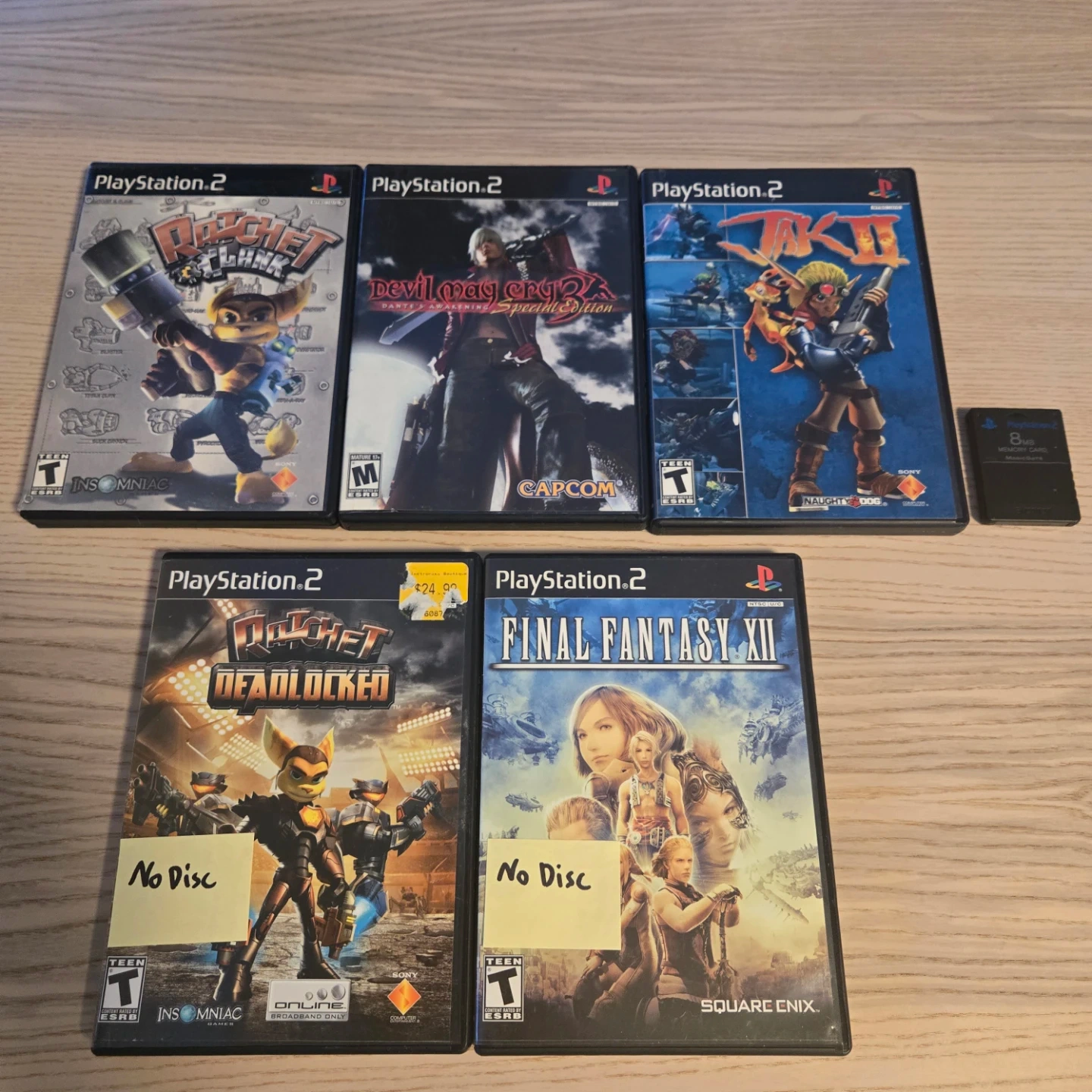 Rachet and Clank, Devil May Cry 3, Jak 2 are all CIB mint condition. Final Fantasy and Deadlocked just case and manuals.