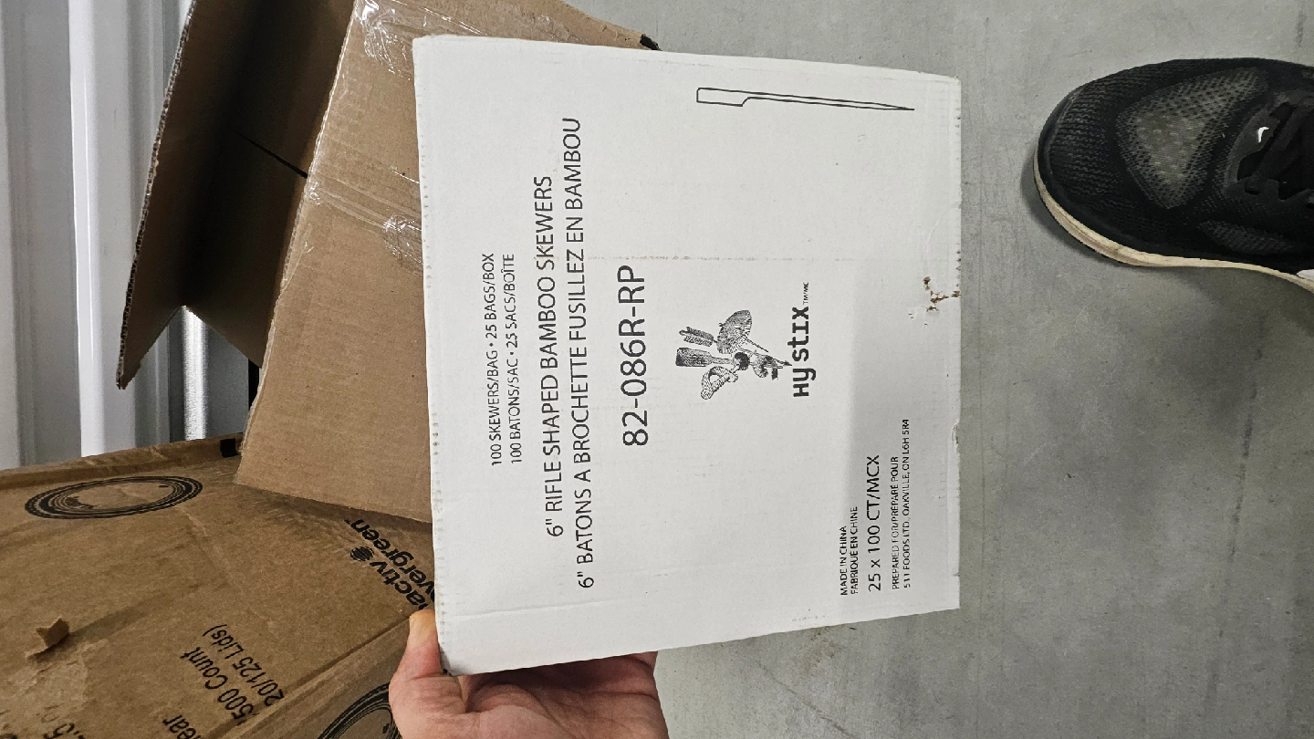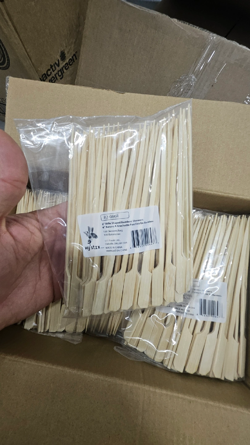 I'm selling Hy Stix 6" rifle shaped bamboo skewers. They come in a bag of 100 skewers, and there are 25 bags in a box. They're great for appetizers or barbequeing.