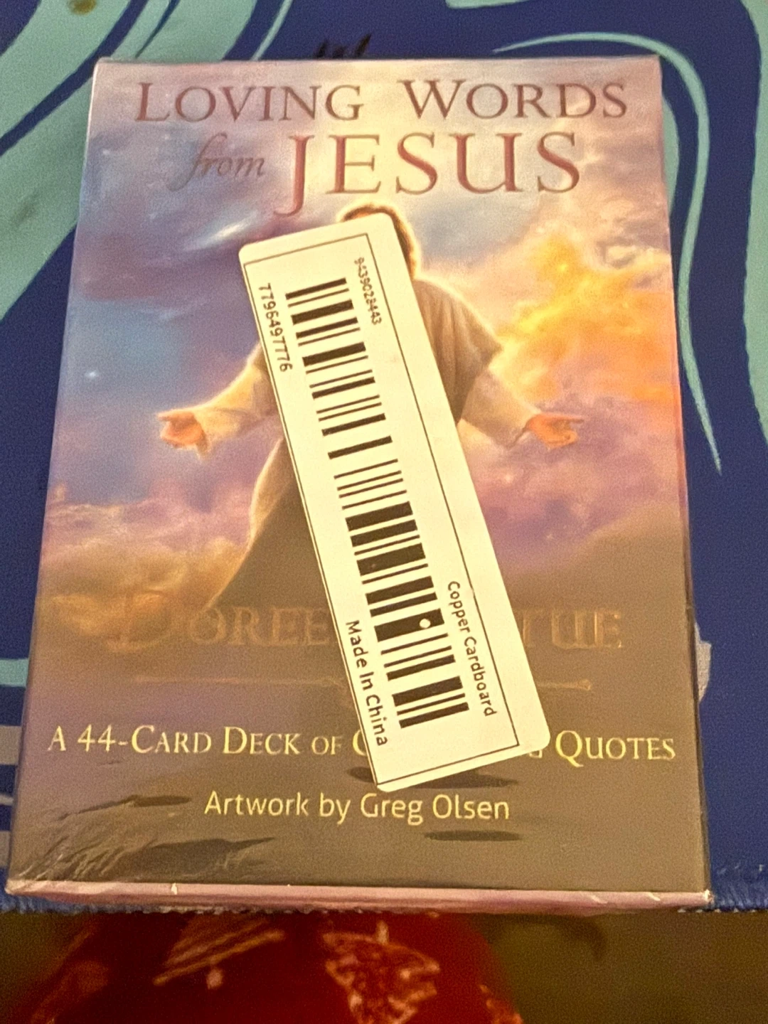 This is a 44-card deck of loving words and quotes from Jesus, with artwork by Greg Olsen. The cards are made of copper cardboard. It's a great way to find daily inspiration!