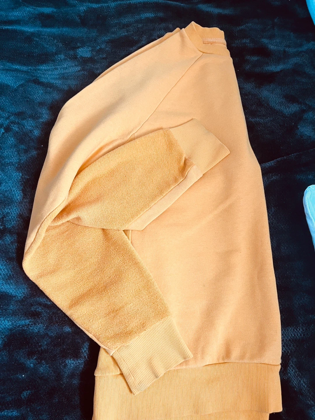 AMNESIA crewneck sweatshirt in a vibrant orange colour. Size medium, M/M. Crewneck style with ribbed cuffs and hem.