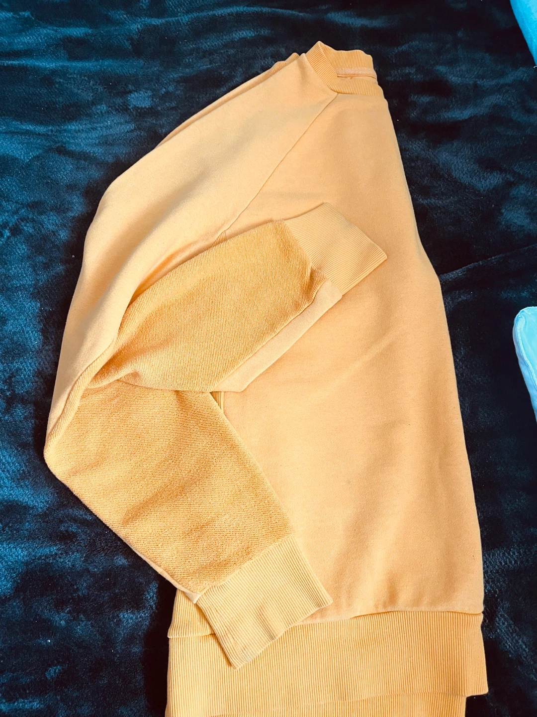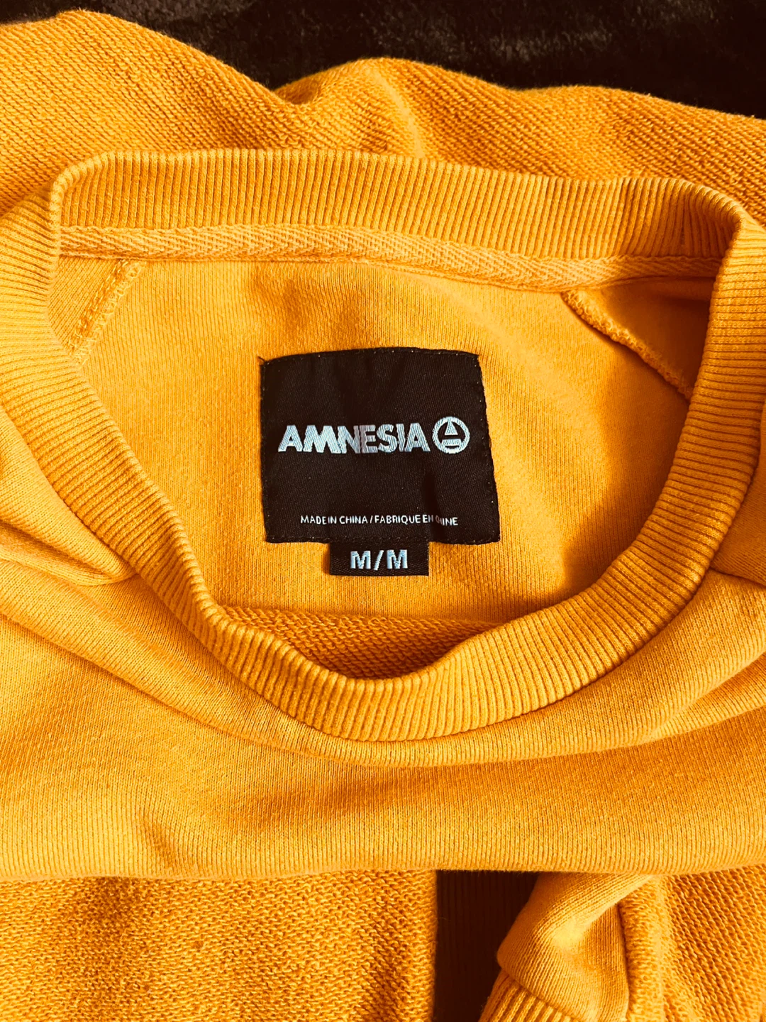 AMNESIA crewneck sweatshirt in a vibrant orange colour. Size medium, M/M. Crewneck style with ribbed cuffs and hem.