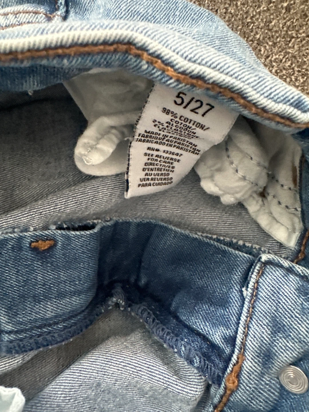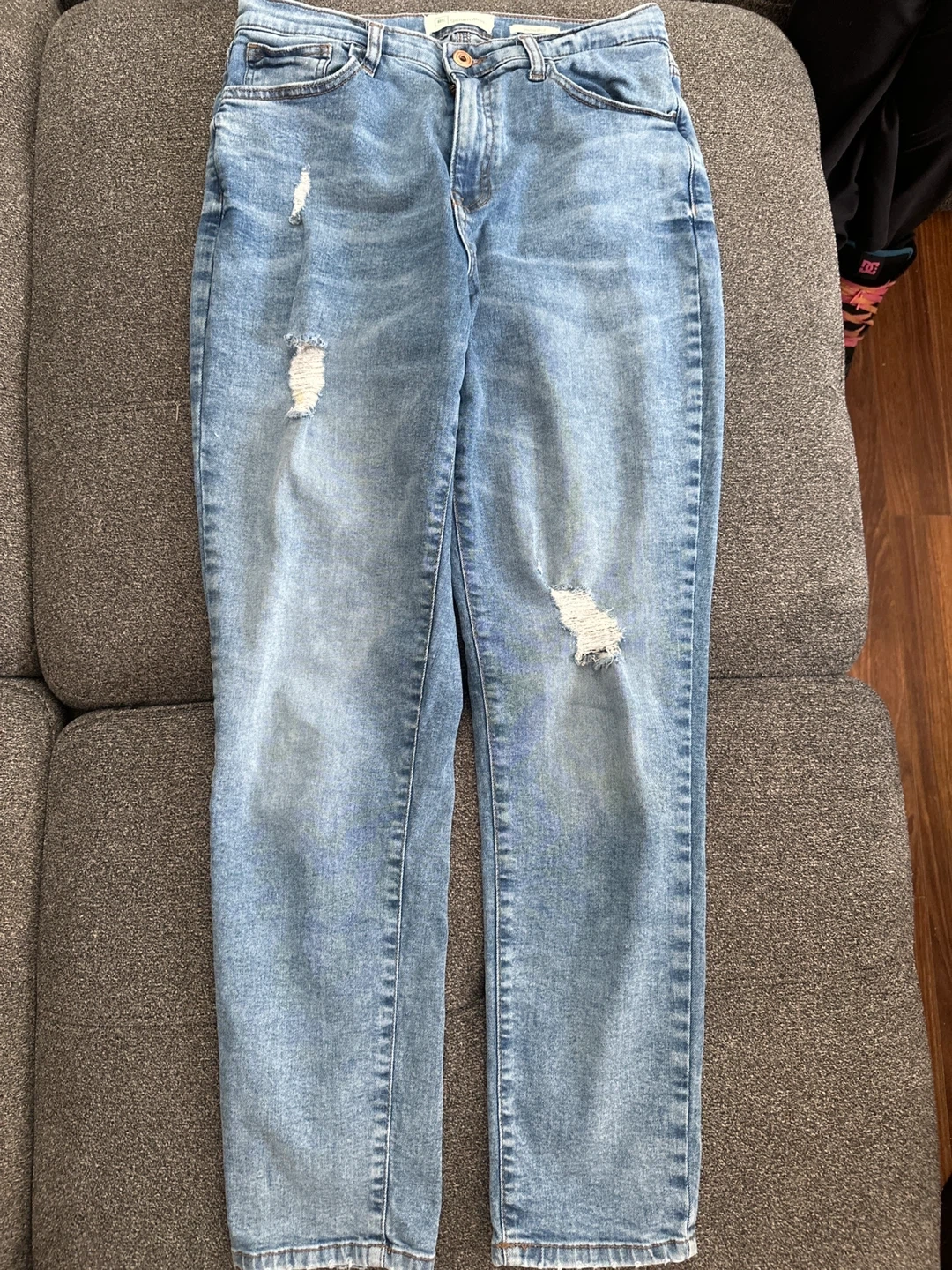 Selling a pair of RE Generation Mindful jeans. They are a size 5/27 and made of 98% cotton. They have a light wash and some distressed detailing.