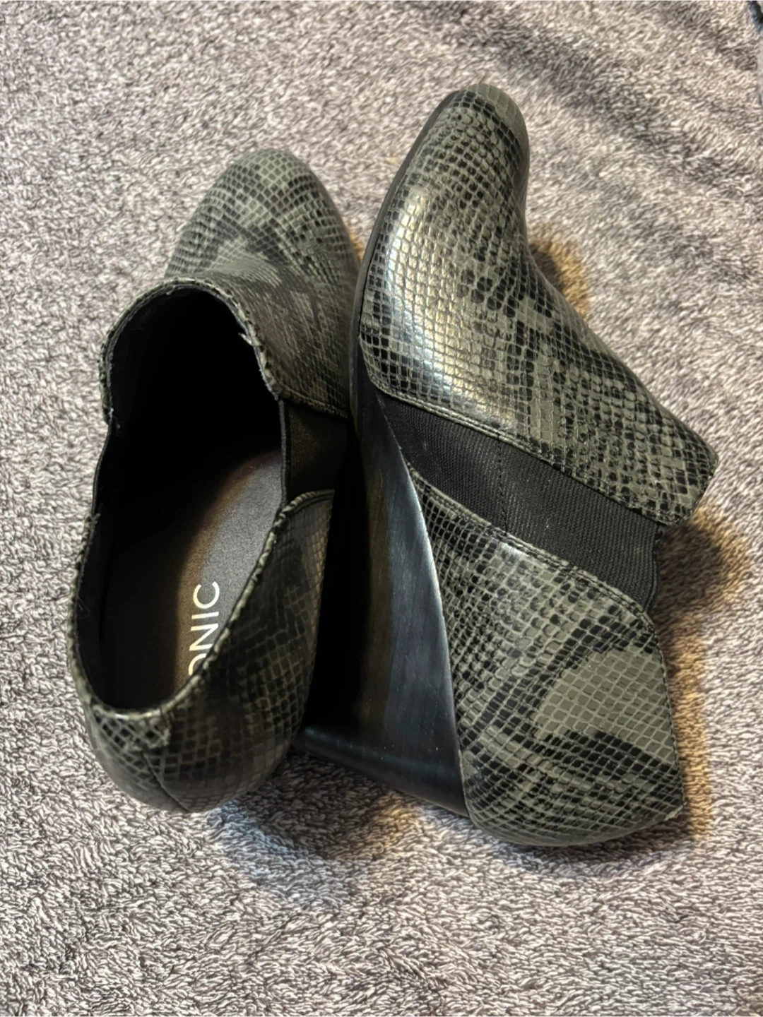 Vionic Women's Grey Snake Print Slip-On Wedge Ankle Boots