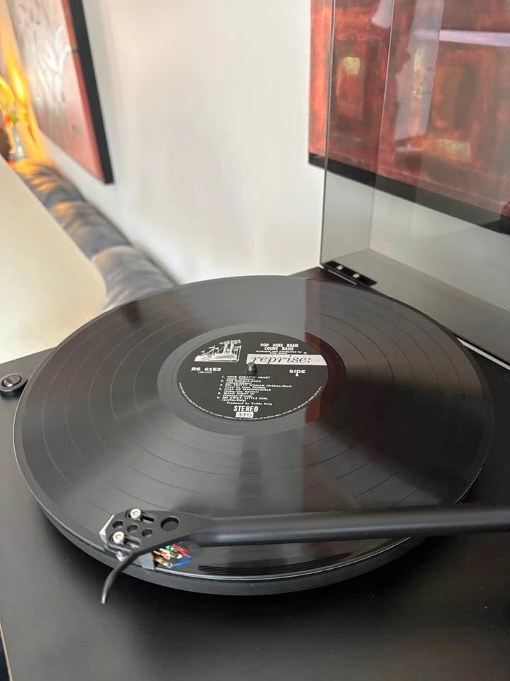 LP record Pop Goes the Basie, a jazz record by pianist and bandleader Count Basie and his orchestra. Recorded in 1964 and released in 1965 by Reprise Records, the album features jazz interpretations of then-contemporary popular hits. This vinyl is in remarkable shape. Pickup only in Burlington. Firm on price.