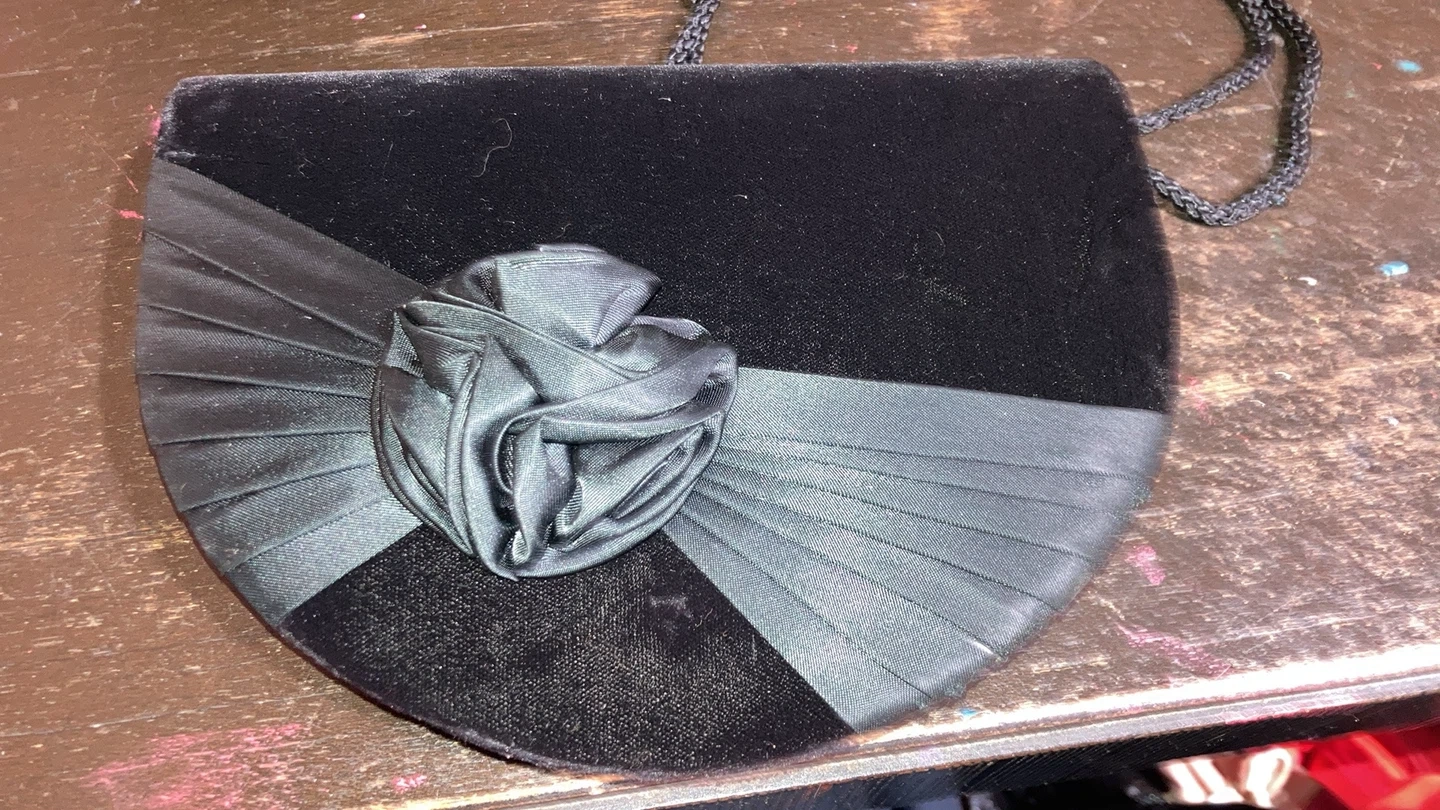 Like new Elegant black velvet evening bag by Eaton! Perfect for special occasions. Features a delicate floral design and a chain strap. It's in great condition and ready to add a touch of class to your outfit.
